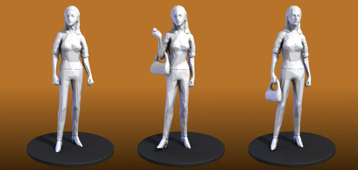 There is a total of 6 different people and 20 different poses (list below). All the models have two LODs depending on the distance you are going to see them or the style you prefer.