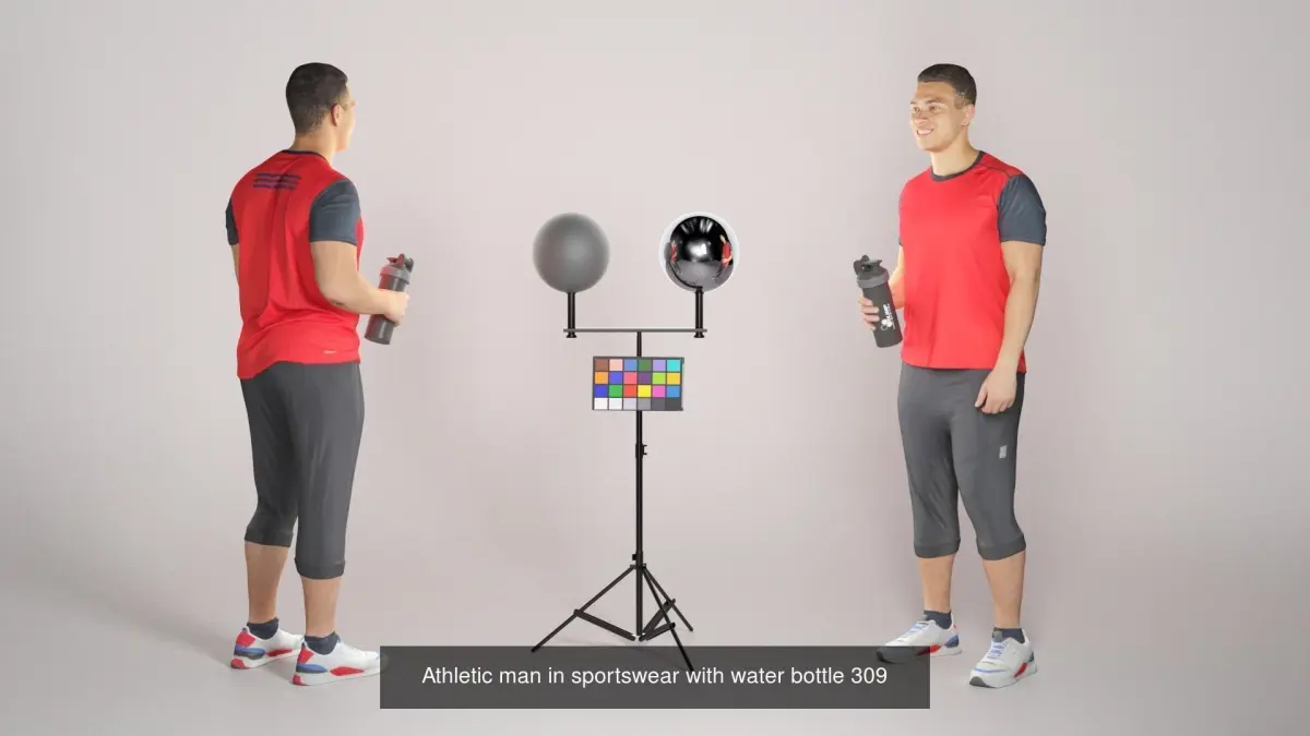 This is a collection of twelve true human size and detailed models of sporty men, attractive women dressed in sports style and charming Golden retriever dog. The models are captured in casual poses to be perfectly matching to variety of architectural visualization, background character, product visualization e.g. sport ground, beach, jogging track, gym, park, VR/AR content, etc.