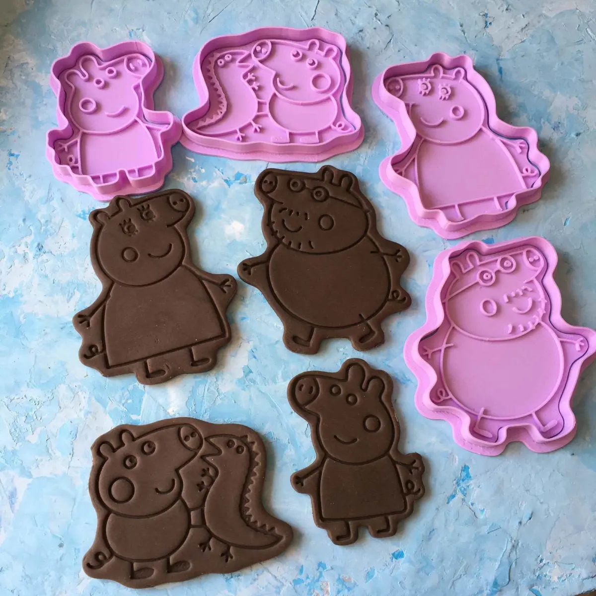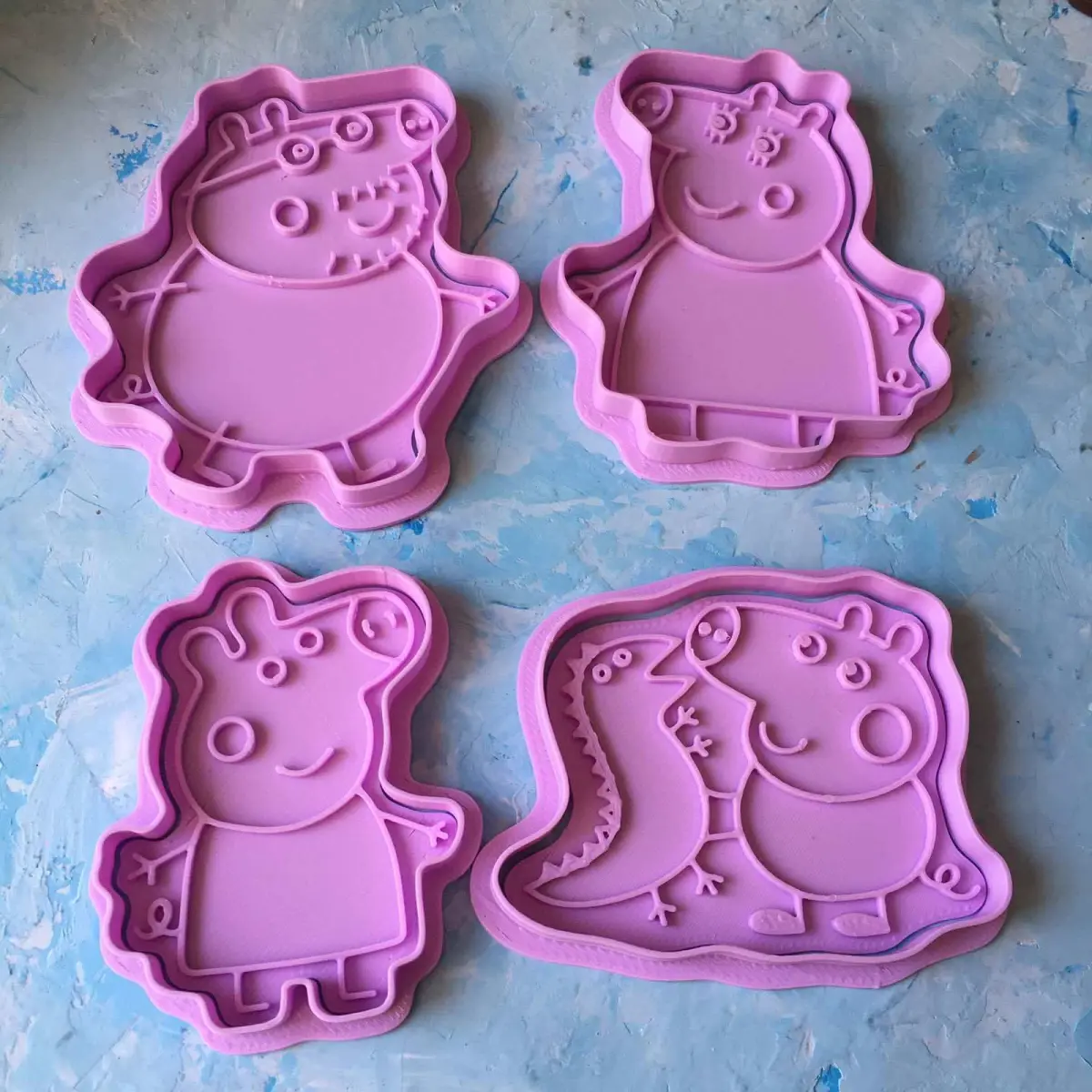 Dimensions: Peppa - 85 x 65 x 11.5 mm., dad - 105 x 95 x 11.5 mm., mom - 105 х 85 х 11.5 mm., george - 75 x 100 x 11.5 mm