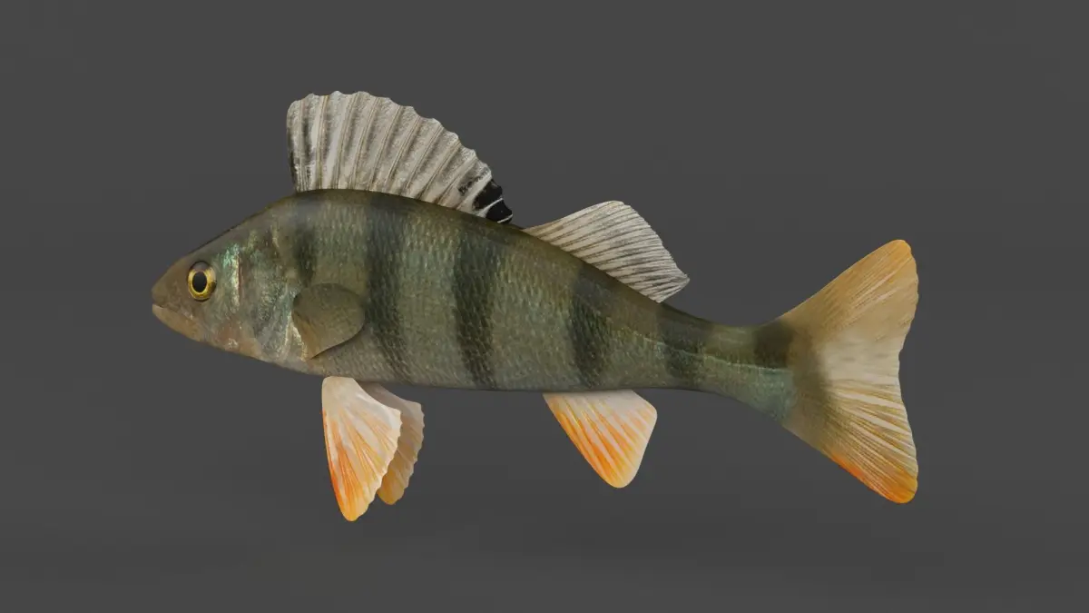 High quality realistic 3D model of Perch FishModeled and rendered in 3Ds Max 2014 with V-Ray