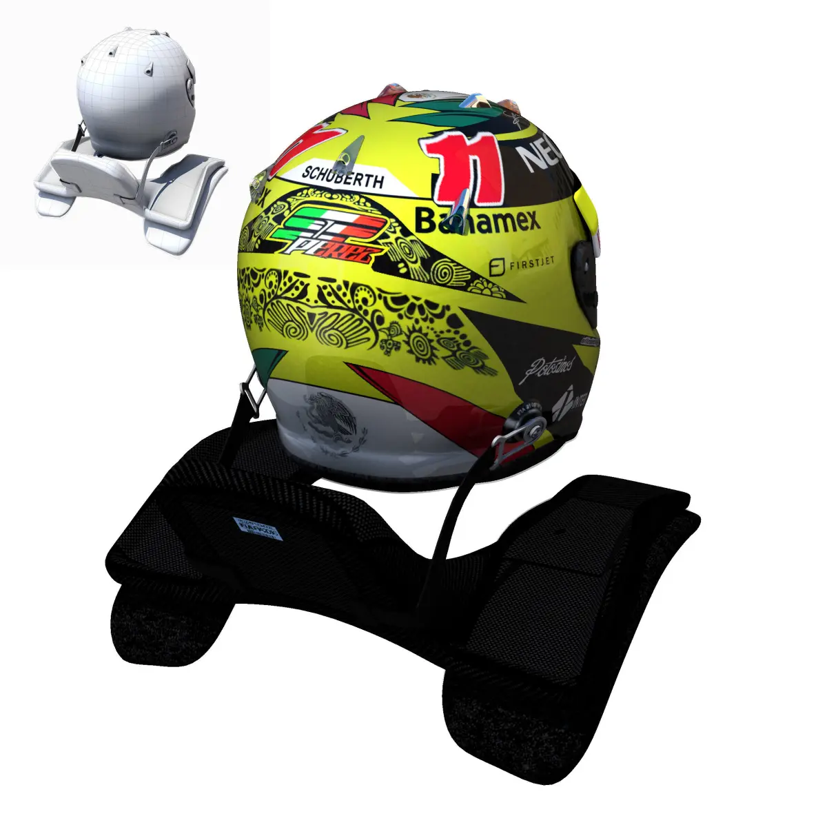 This is a 3D low poly model ,it was designed to provide a high definition in a low poly. Standard low-poly mesh with specific poly count. It`s the most accurate and realistic of the market. This is a recreation of a F1 Helmet model,it can suffer modification over the season. The model is completely ready for use visualization in maya. For low poly model simply press 1 and for the high resolution press 3. In Cinema4d go to function menu and subdivide. In 3dmax meshsmooth In the low poly: Poly count : 5182Vertex count : 5554In the high poly: Poly count : 112472Vertex count : 113913Textures included. Each texture is in jpg format and have a 4K texture resolution for high quality It has color texture Because of different Disk topology at different computers it might be required to change the textures path at the destination computer. The 3D model was created on real base. It's created accurately, in real units of measurement, qualitatively and maximally close to the original. Please feel free to contact us for any query or if you need further assistance, we will be happy to assist you.