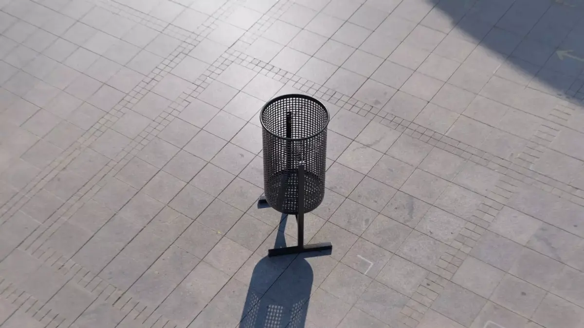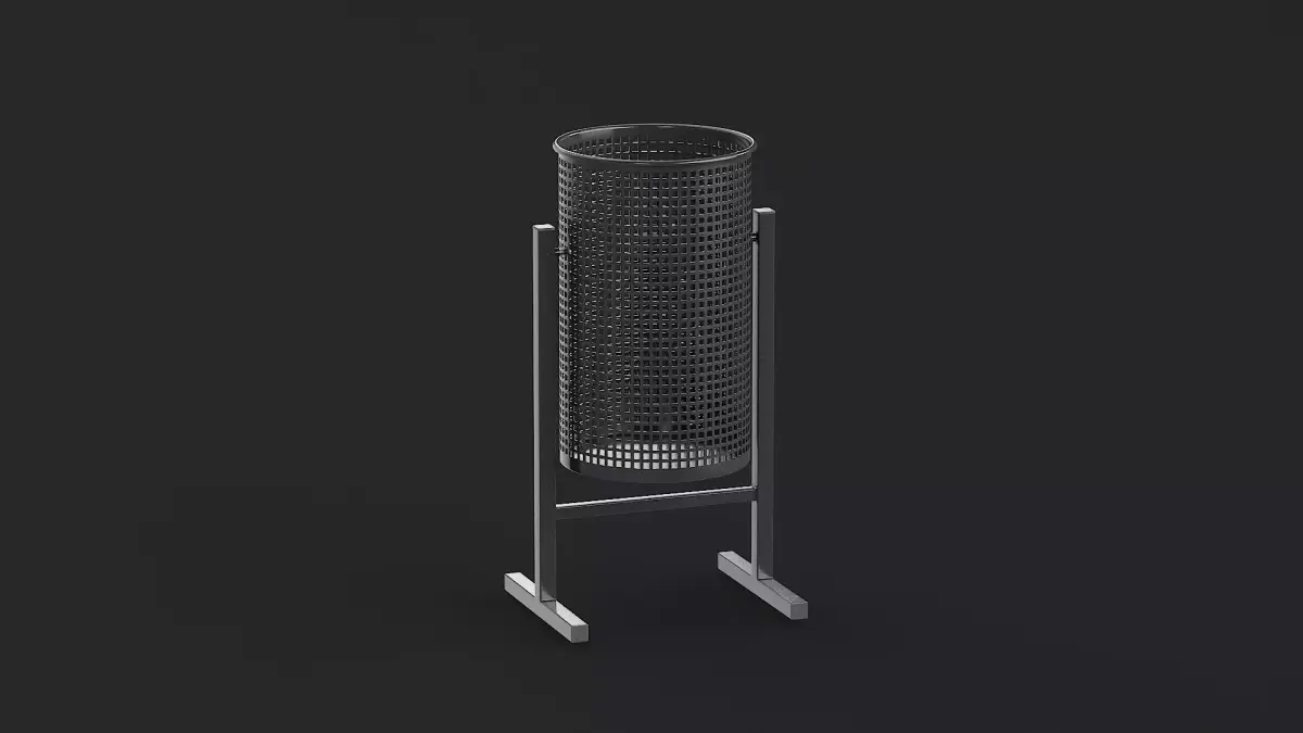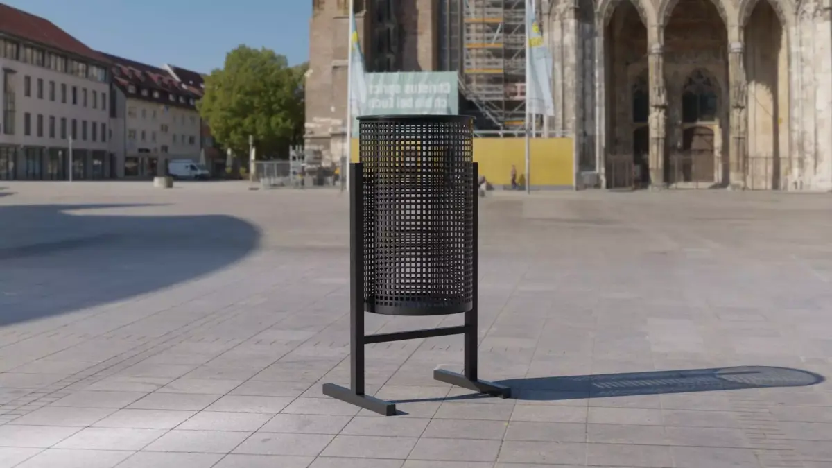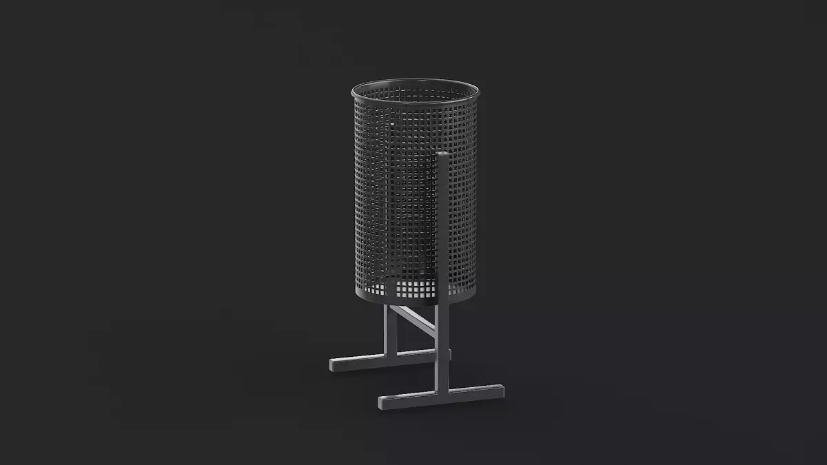 Dust Bin Outdoor Metal 04. U-stand mount. Modern urban outdoor enviroment