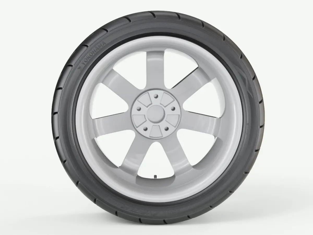 3D model of high performance car wheel - Yokohama Advan Neova AD08 tyre and Audi TT stock rim. Tyre size - 255/30 R19, rim size - R19Model is not textured appart from sidewall details, which are done with normal map. However tyre and rim is properly unwrapped and can be textured if needed.Model dimensions: LWH 25,7 x 63,55 x 63,55 cm (10.12 x 25.0 x 25.0 in).
