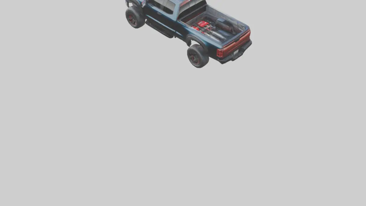 [High-performance pickup truck model featuring a supercharger, designed for realistic 3D rendering and animation.] Available file formats: FBX, OBJ, STL, GLB, USDZ, BLEND.