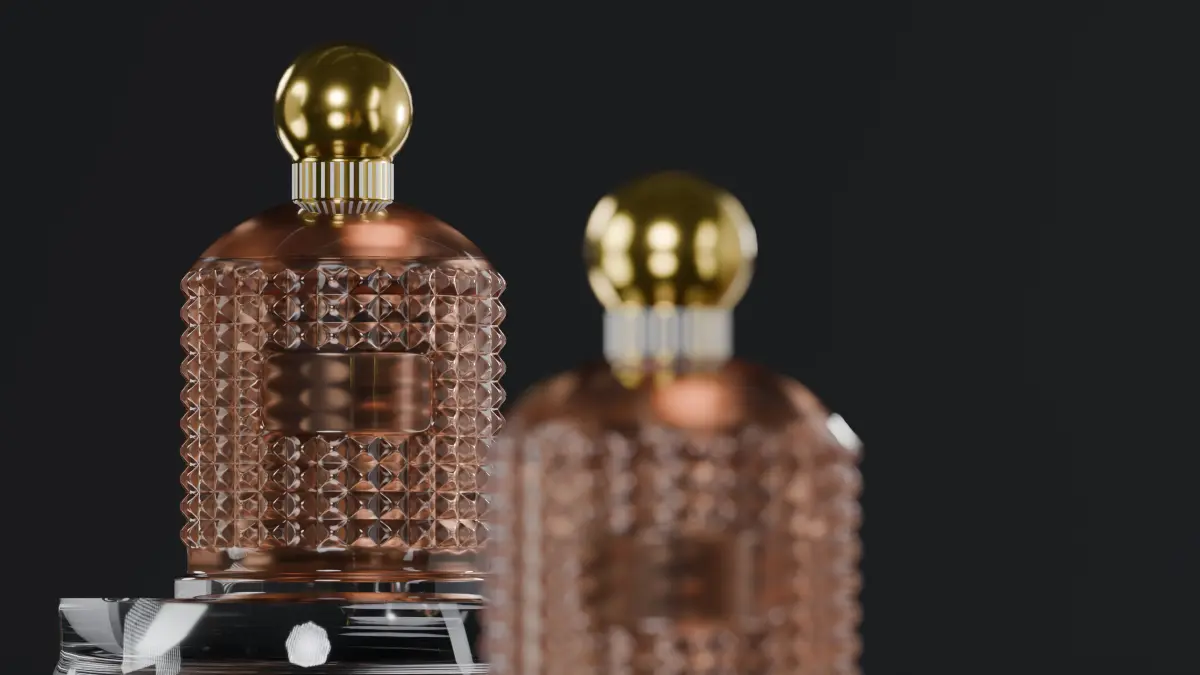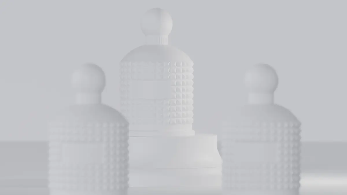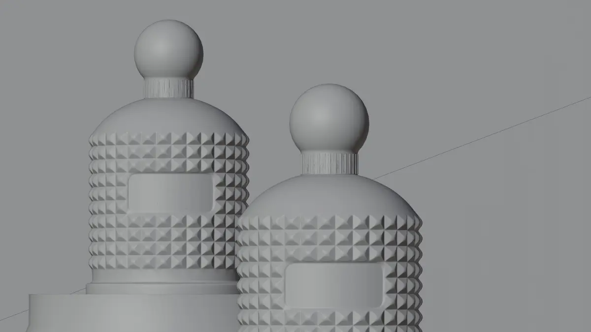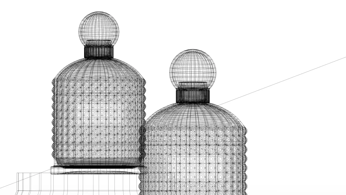 The glass of the bottle is modeled with thickness and the liquid inside the glass bottle is slightly overlaid on the glass mesh. This provides more physically accurate renders in most modern render engines.