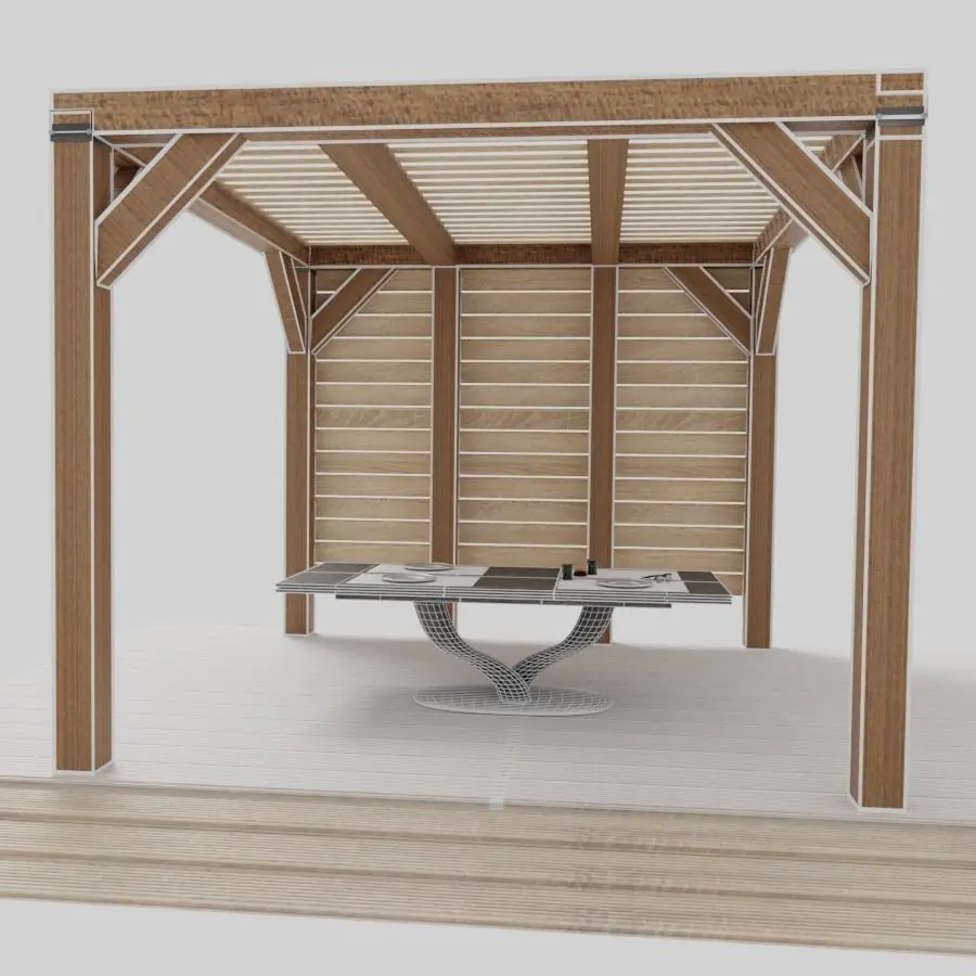 1 floor tile / slab1 table1 Chair1 Pergola1 pair of glasses