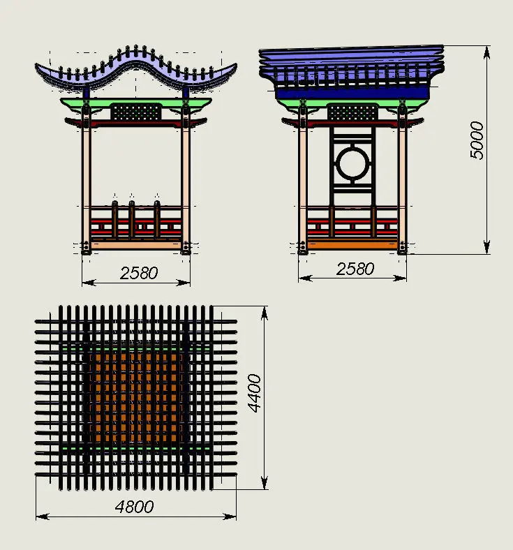 Model size 4800(2580)x4400(2580)x5000mm.