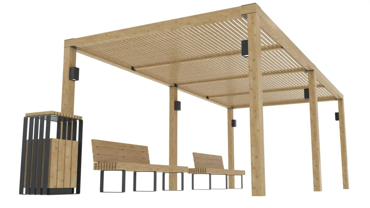 Pergola With Bench and Dustbin 3D model