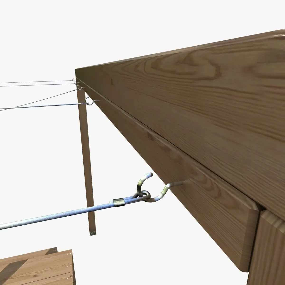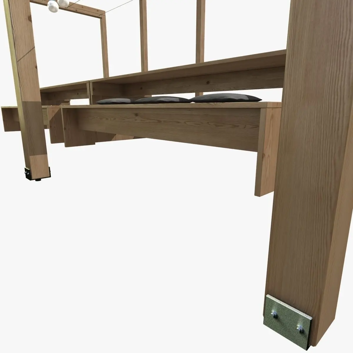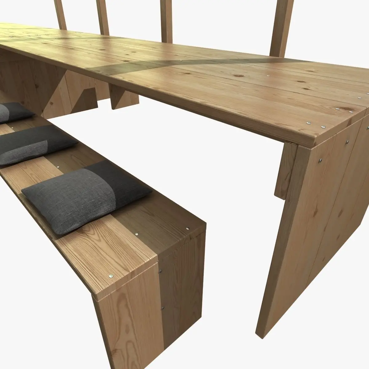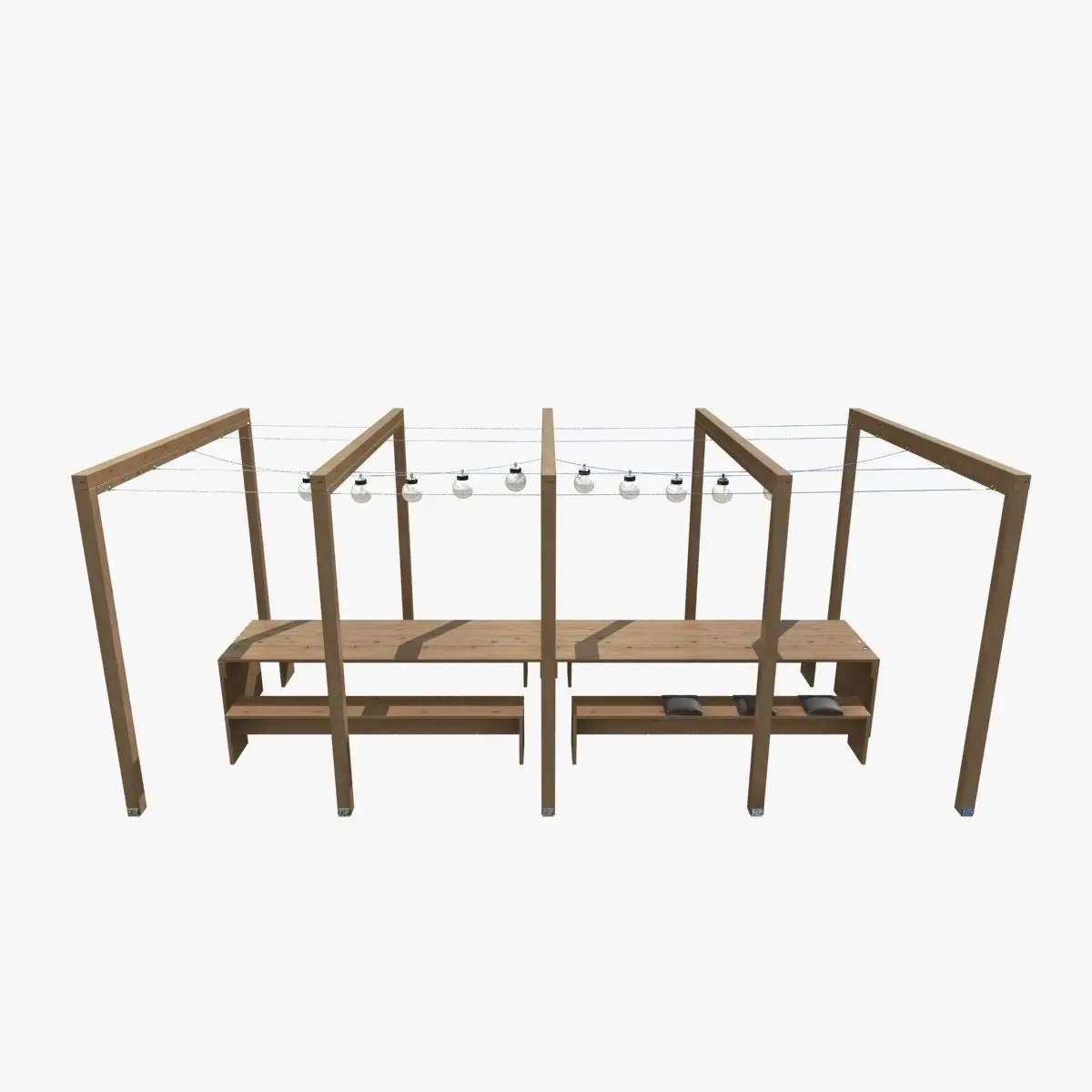 This is high poly pergola with wooden table, bench, gray seat cushions and spherical lights.Stack not collapsed.Textures included.Rendered in vray.Model tested checkmate light program.