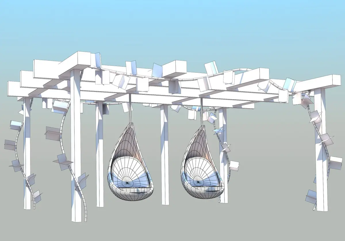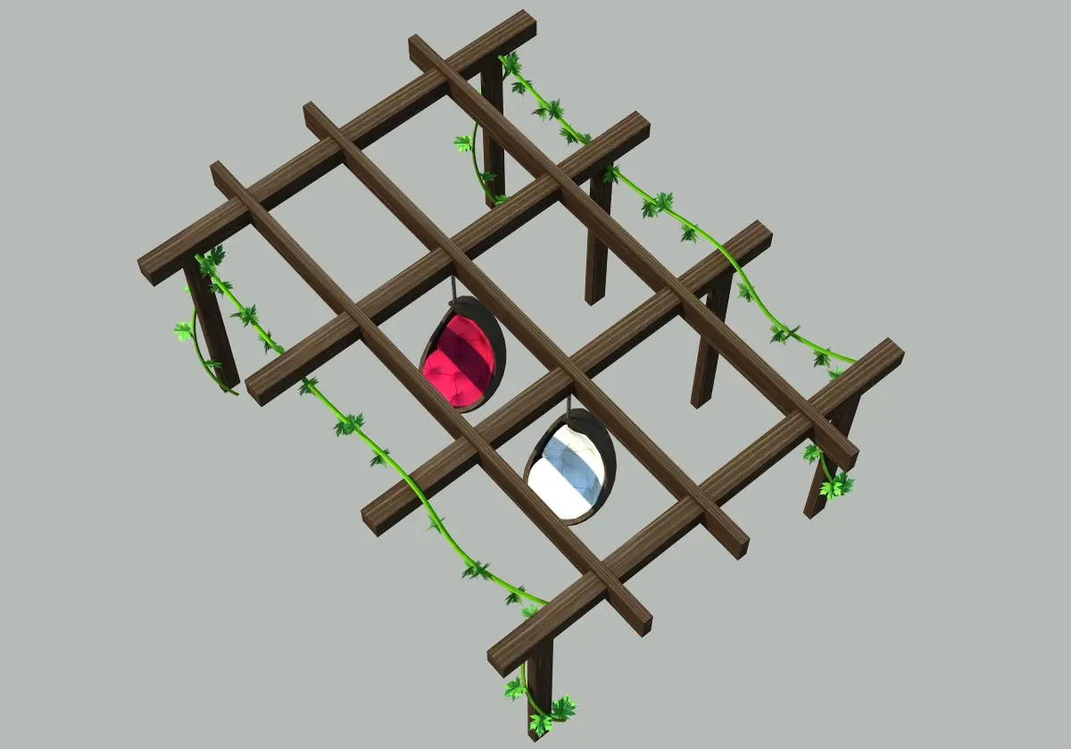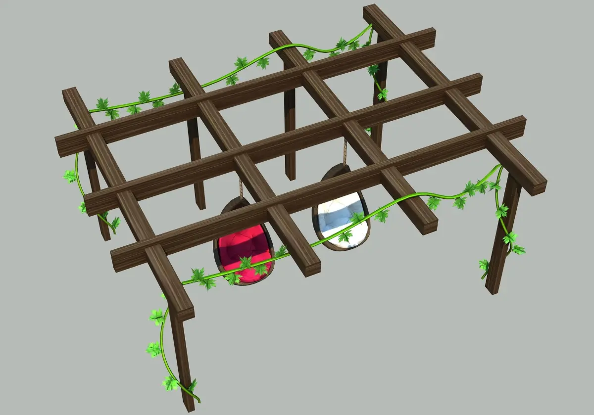 - Pergole with swing animation low-poly 3d model.