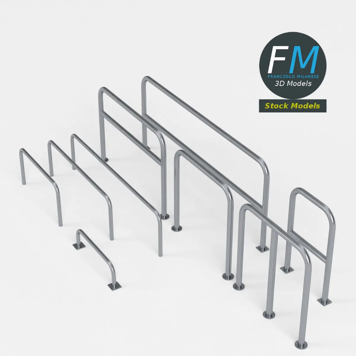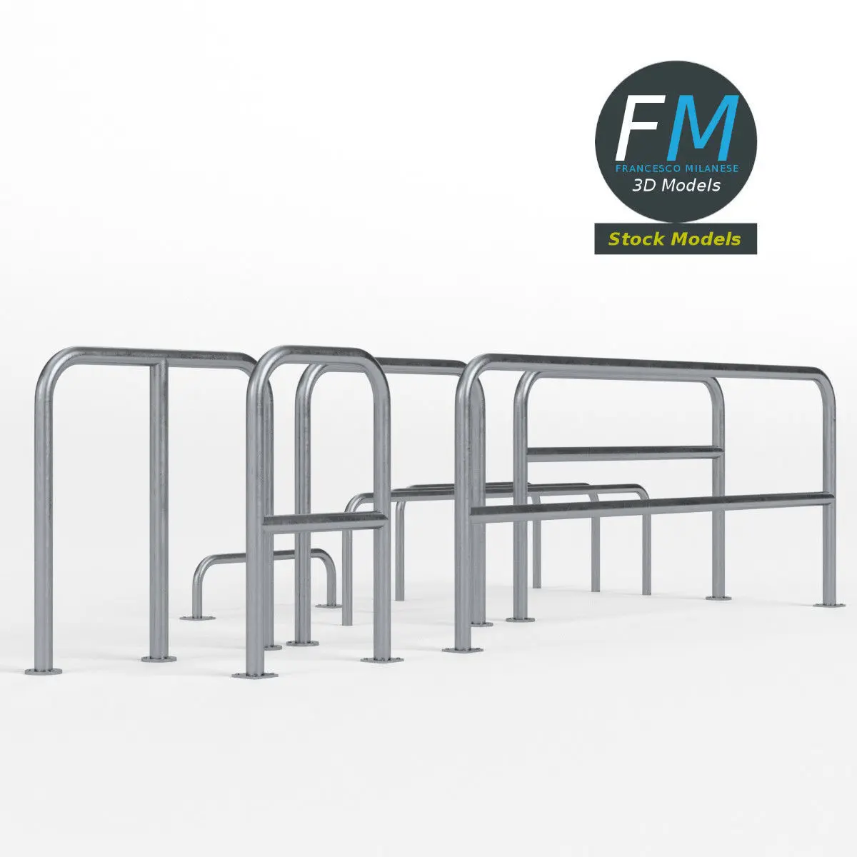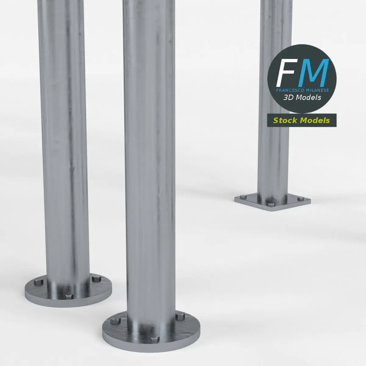 Perimeter hooped barriers 3D Models. 9 individual objects sharing the same non overlapping UV Layout map, Material and PBR Textures set. Production-ready 3D Model, with PBR materials, textures, non overlapping UV Layout map provided in the package.