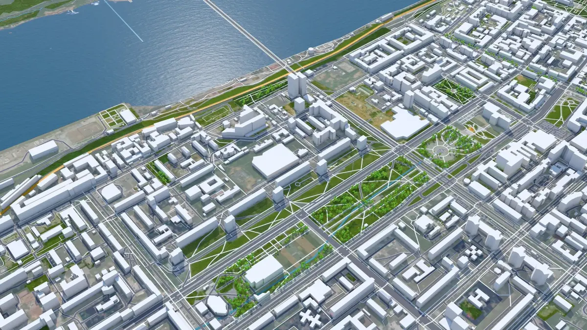 - Stroked building, Trees (mograph cloner), Water Effect and Stroked Roads are only in cinema 4d file