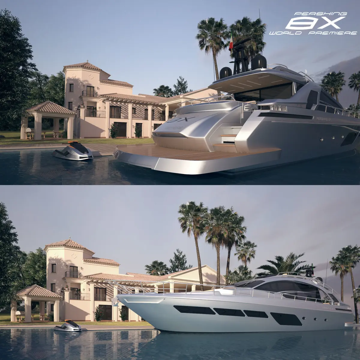 1 500 000 TurboSmooth892 000 PolyThe new Pershing 8X sportbridge was introduced in 2019 at Boot Dusseldorf, where it received good reviews from the public and the jury.