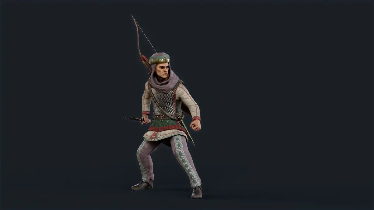 super optimized character in balance between quality and polygon economy.The finished character with an bow and dagger has only 9650 quad polygons