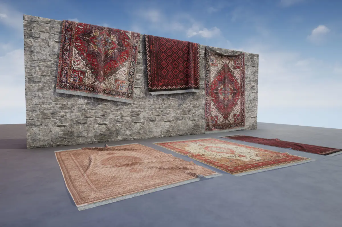 high quality realistic persian carpets with multiple shapes (on floor and hanged on wall) are best for your projects.