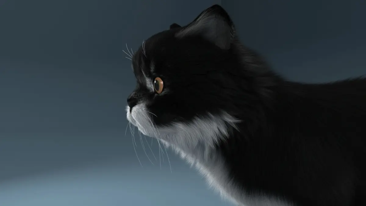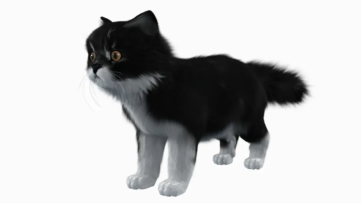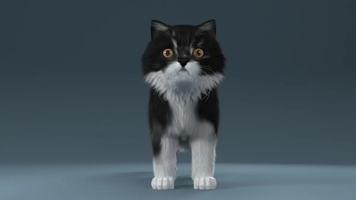 Eyeballs, corneas, mouth, whiskers and tongue are included and modeled separately