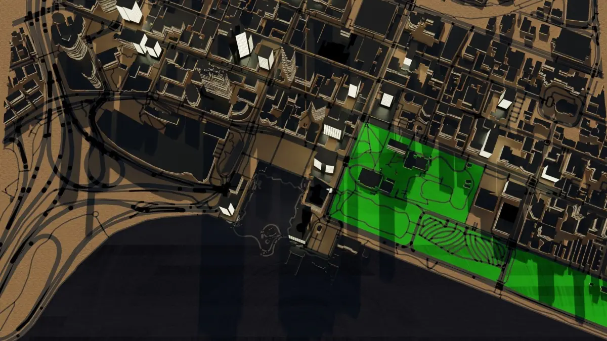3d model of cityscape perth, 3d model created using a blender based on CADMapper, content includes :
