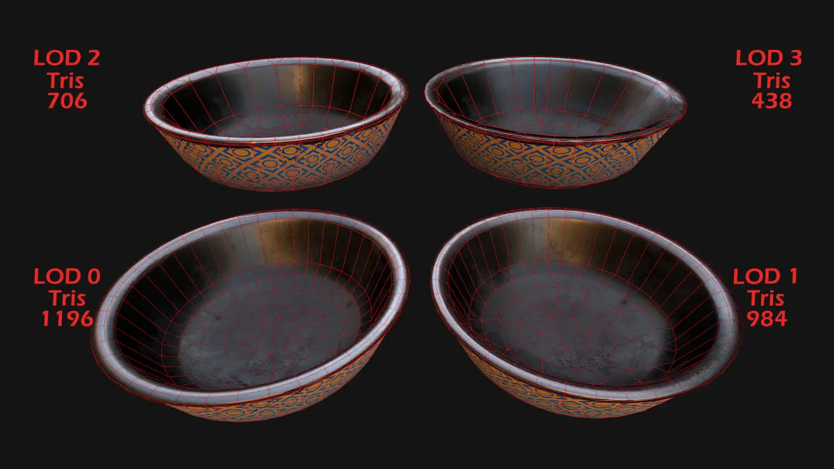 - Tris: 1196(LOD0),984(LOD1),706(LOD2),438(LOD3).