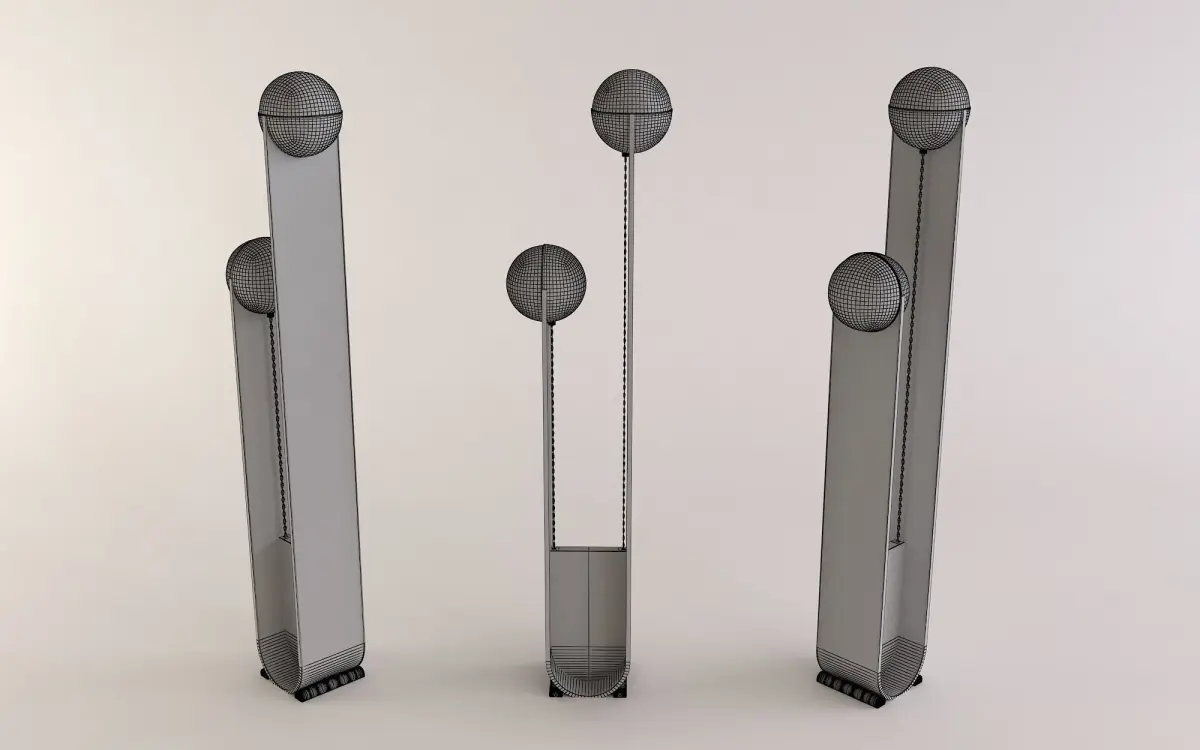 Pete and Nora Floor LampPolished stainless steel, hand-blown glass.