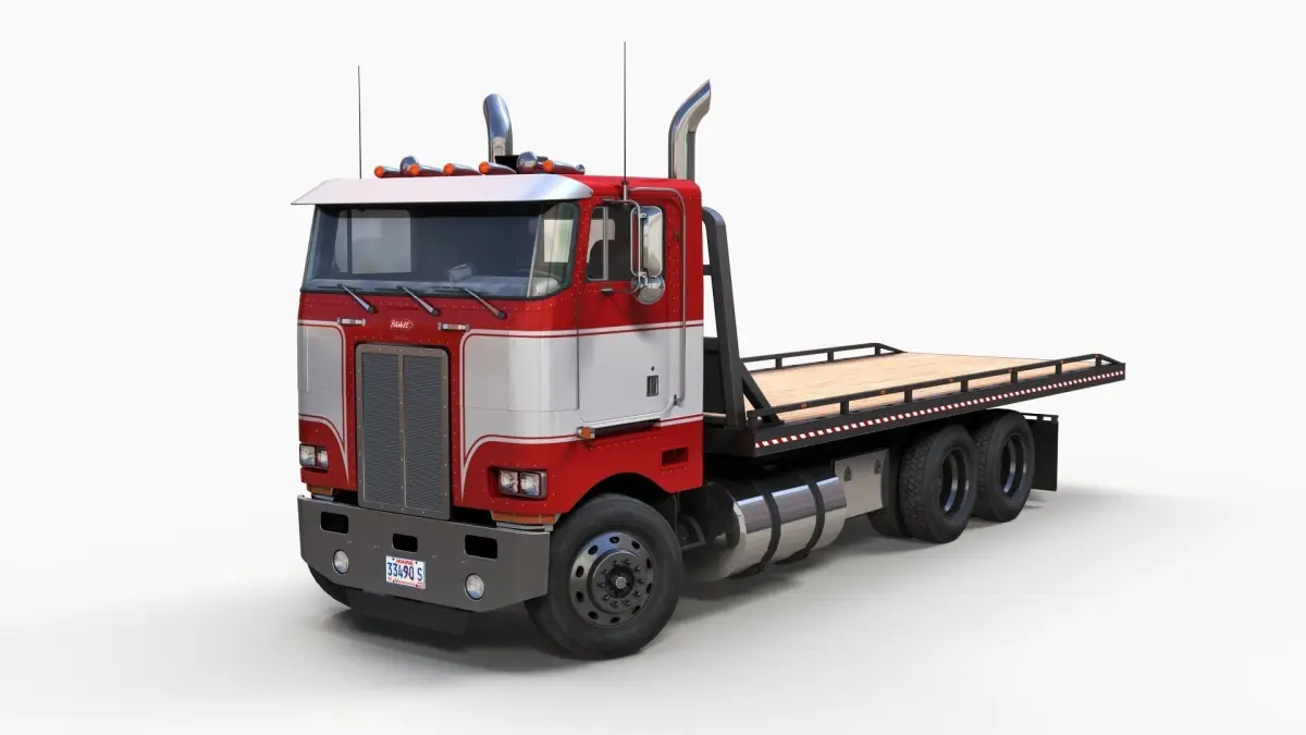 Peterbilt 362 flatbed truck game ready model.