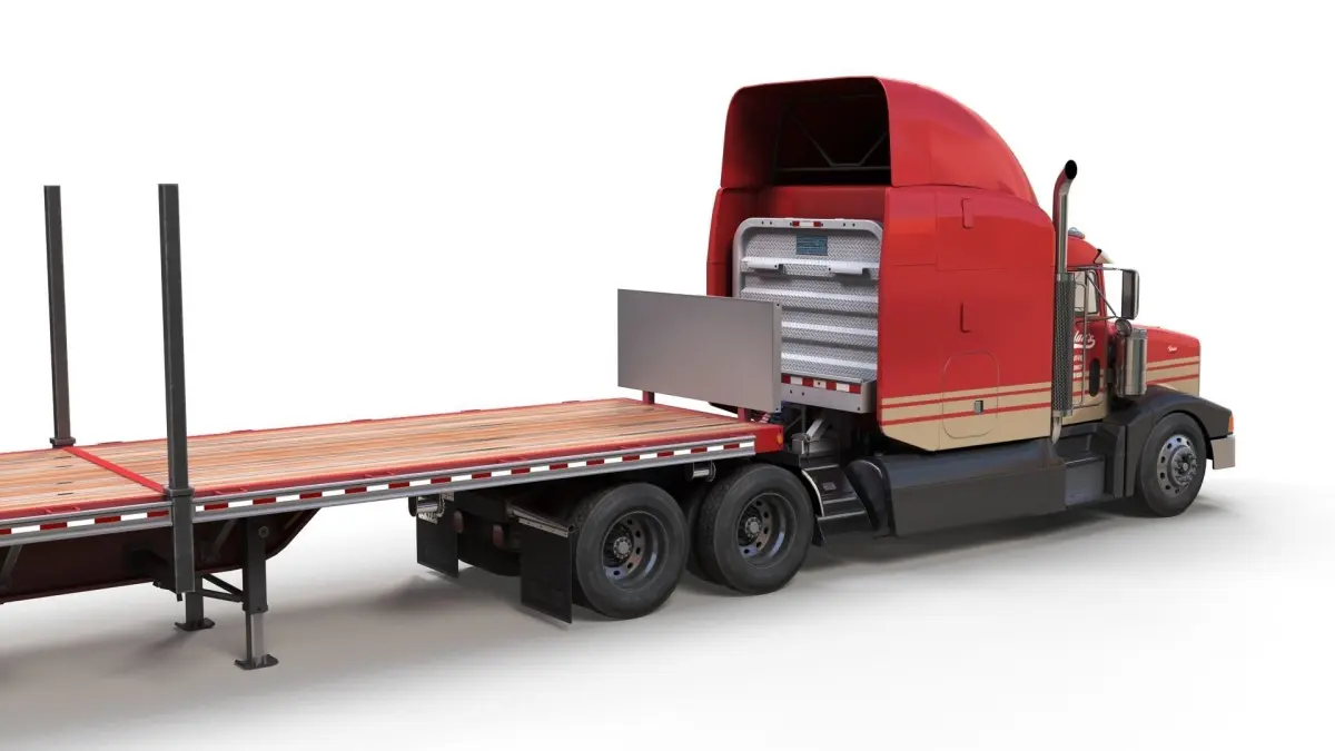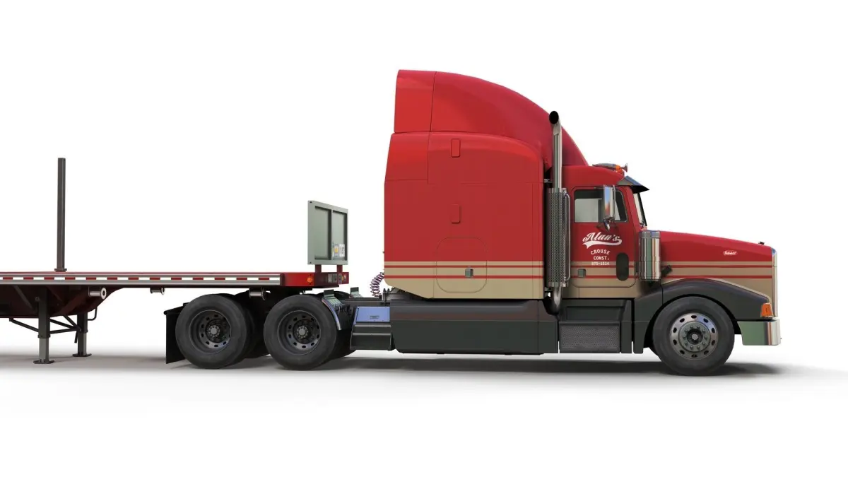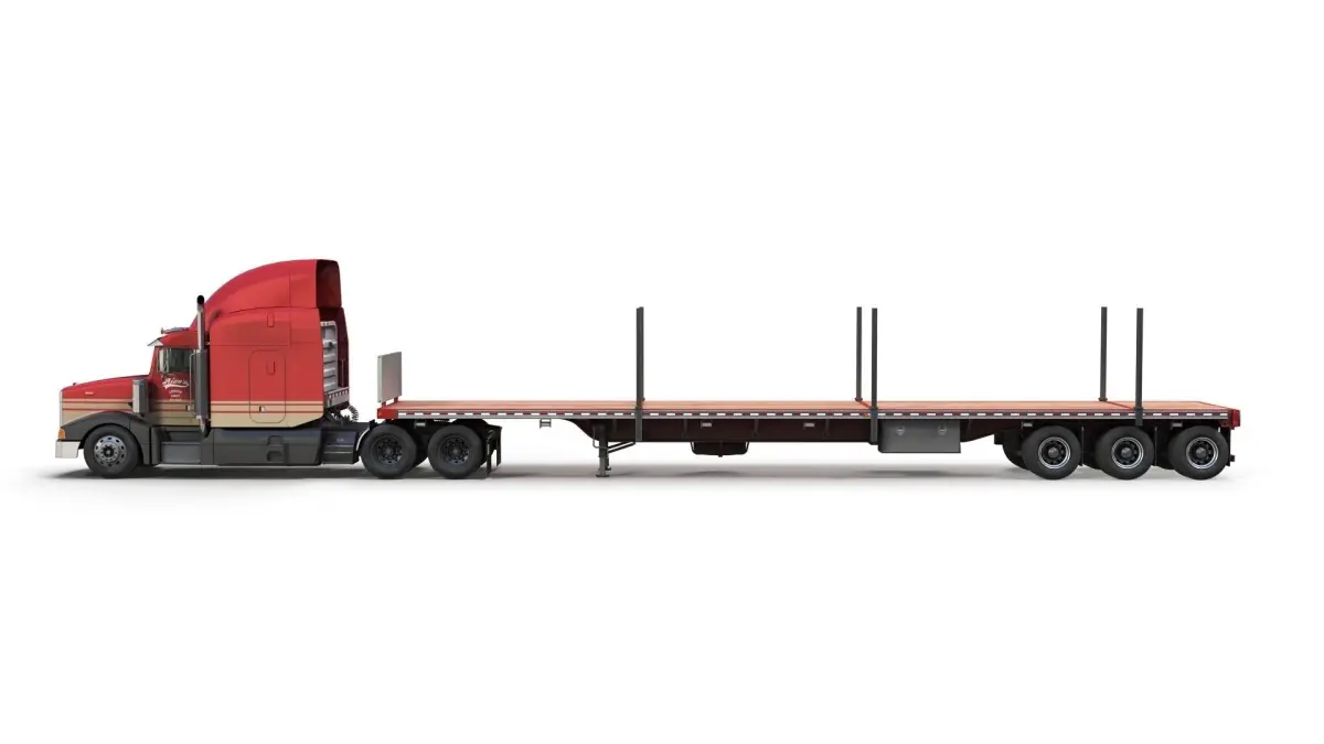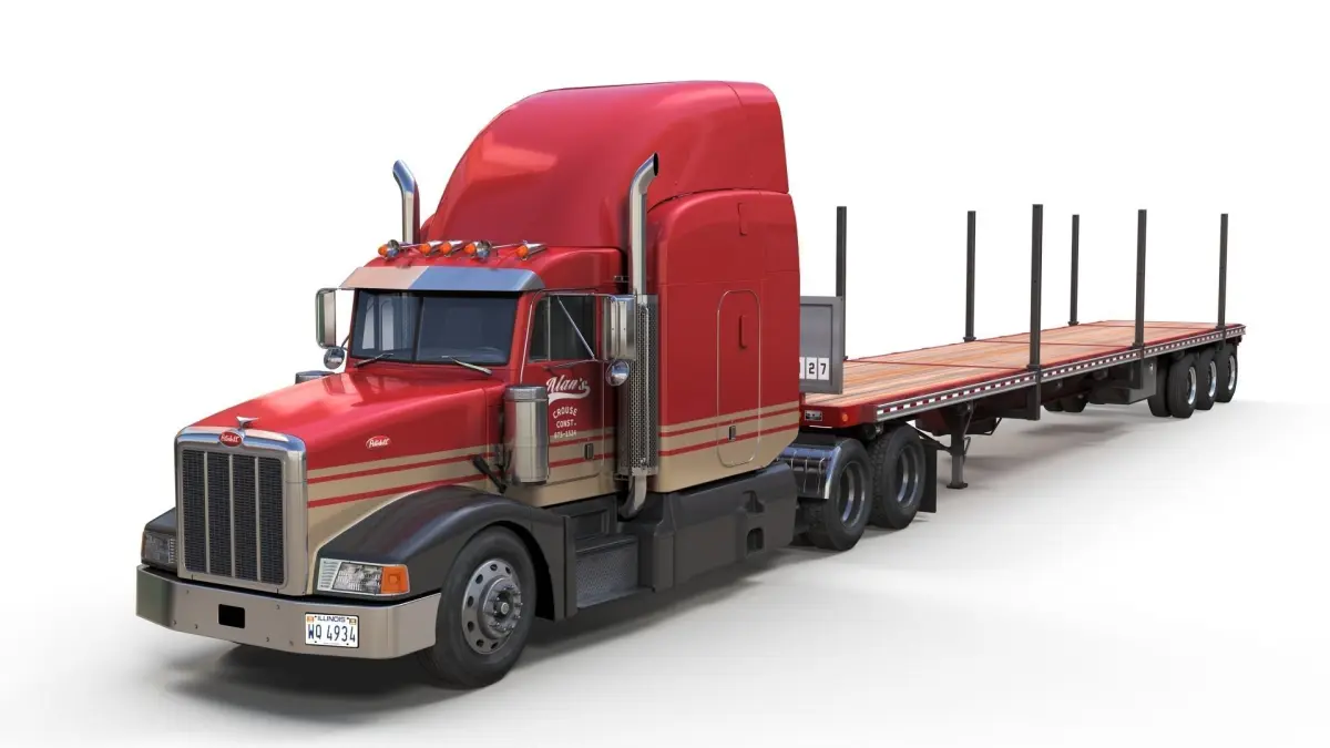 Peterbilt 377 flatbed trailer truck game ready model.