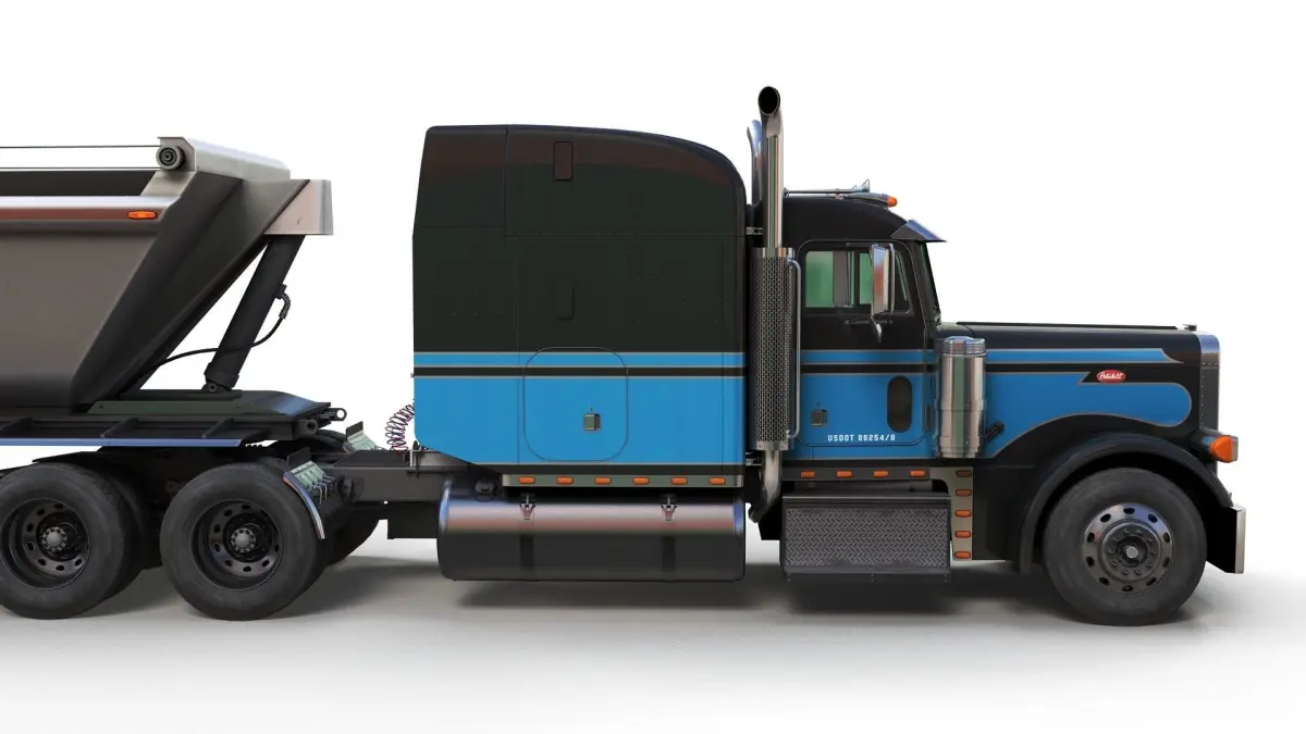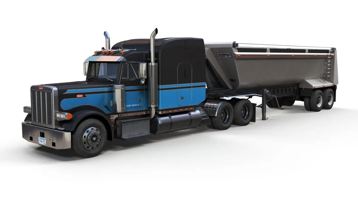 Peterbilt 379 dump trailer truck game ready model.