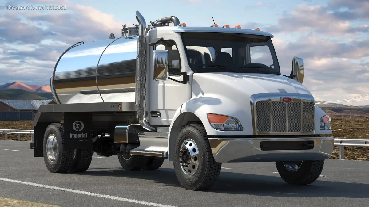 Peterbilt 537 White Vacuum Truck is a 3D model of specialized vehicle that used for cleaning out septic tanks, sewers, and other waste systems.