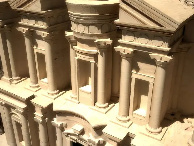 Photorealistic 3D polygonal model of El Deir Monastery building sited in Petra, Jordan.