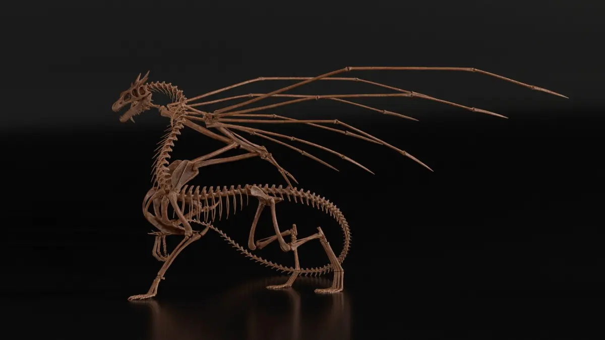 A fantasy dragon skeleton is a fossilized representation of a legendary monster. Consisting of bones and cartilage, it fuels myths of ancient beasts. Though purely fictional, such remains appear in folklore, fantasy stories, and speculative art, reinforcing the idea that dragons once soared through forgotten eras of history.