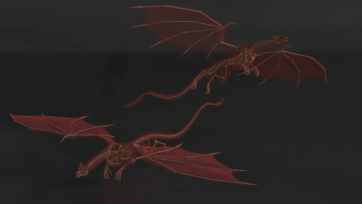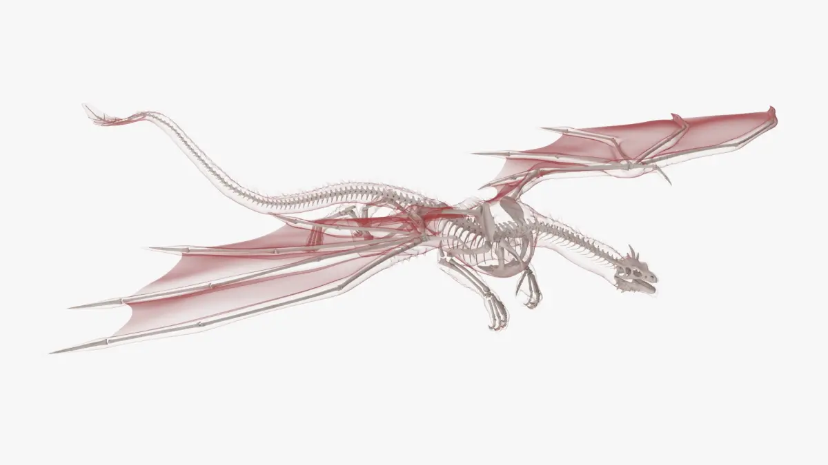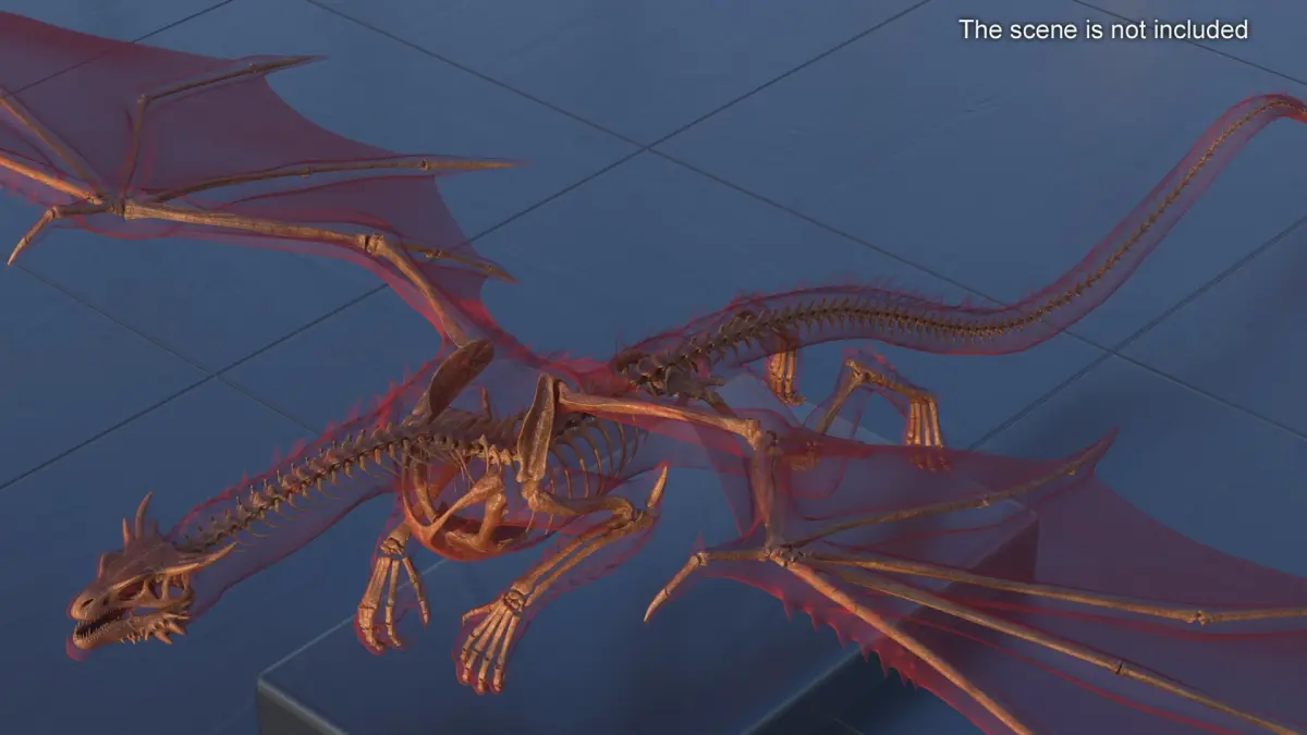 Petrified Skeleton Dragon in Transparent Shell is a three-dimensional model of fantasy-style dragon skeleton set, including the fossilized bones of a famous monster and transparent skin membrane (envelope).