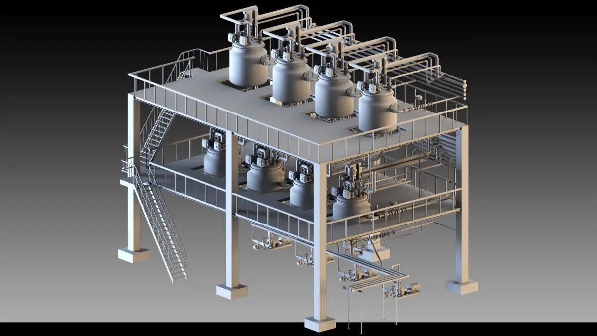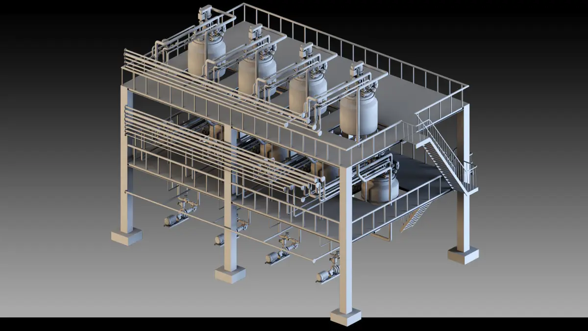 This highly detailed 3D model represents a petrochemical unit, meticulously modeled in 3ds Max with modular components that are easily separable and customizable for a variety of industrial and architectural applications. The model includes separate pieces for maximum flexibility, ideal for use in petrochemical, industrial, or gaming projects that require realistic and detailed 3D assets.