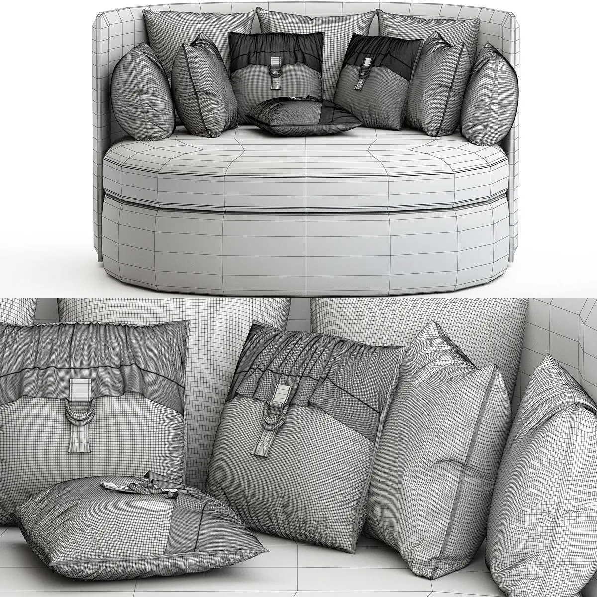 Petrol Blue Seater Round Velvet Sofa 3d model Low-poly 3D model
