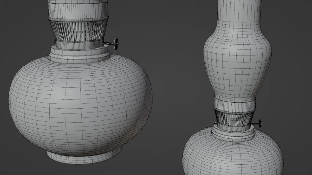 This model was created with reference from a similar petrol lamp that my parents have (different decorations on the marble). Preview images were rendered with Blender Eevee and Cycles.