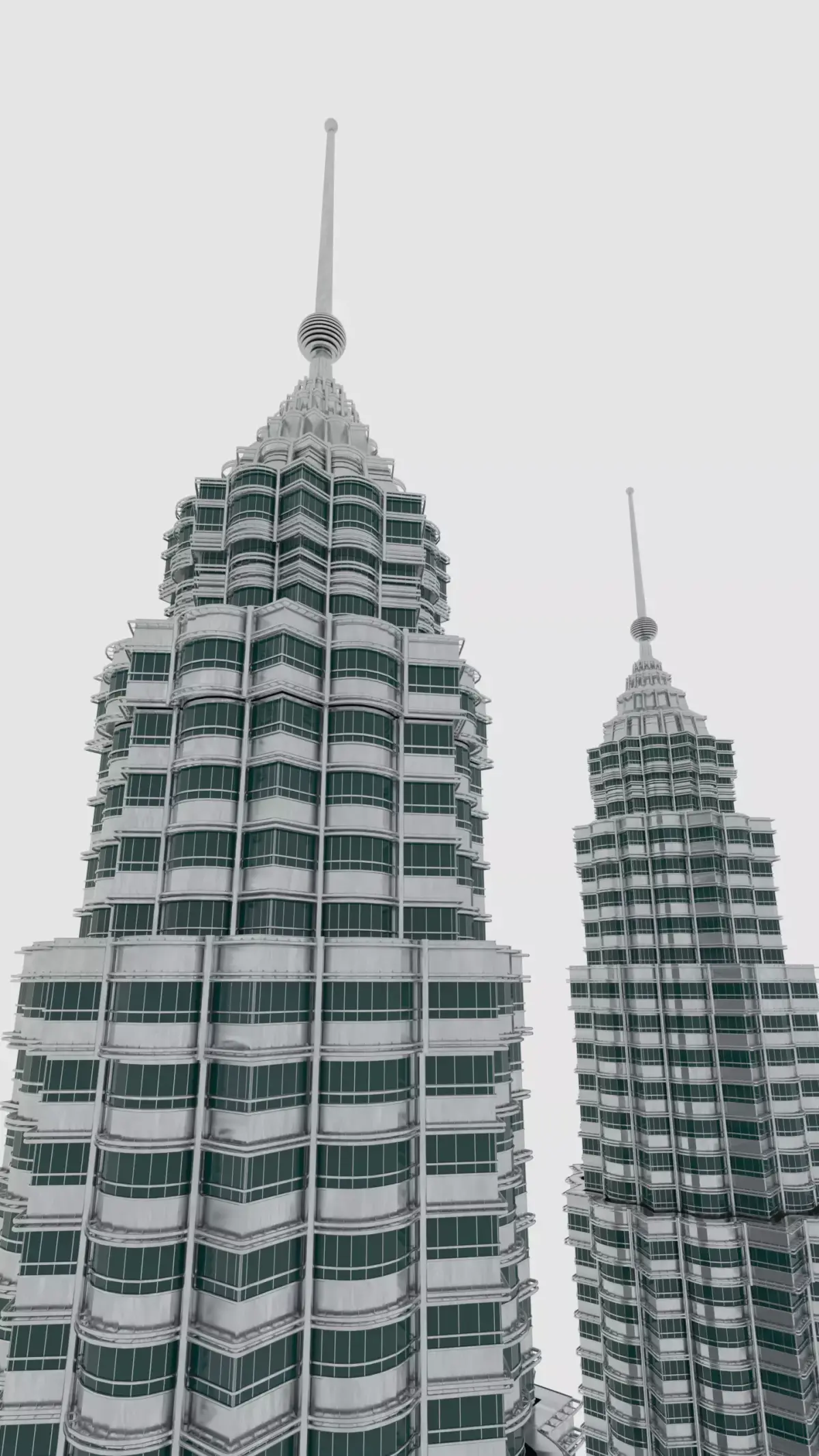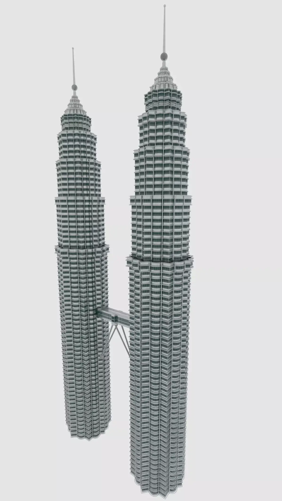 KLCC, the tallest twin buildings in the world, the fourth tallest hotel in the world, a shopping mall, office buildings and several hotels. Soaring to a height of 451.9 metres, the 88-storey twin structure is Kuala Lumpur's crown jewel. Majestic by day and dazzling at night, the PETRONAS Twin Towers is inspired by Malaysia's vision to be a global player.High poly & textured. Not included Suria shopping mall.