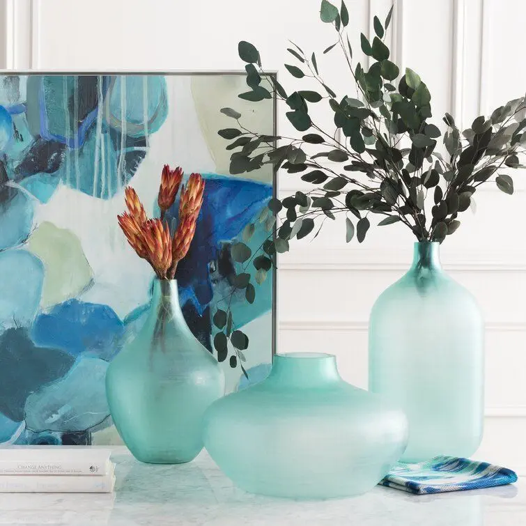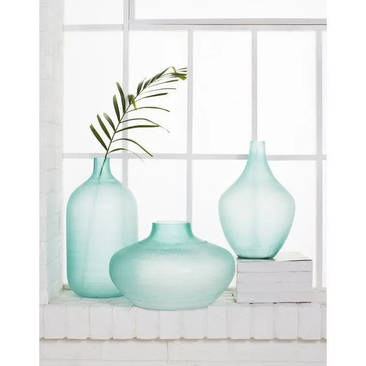 - Bring visual appeal to your in-home garden arrangement with this eye-catching glass table vase. This piece's curved silhouette is sure to draw the eye towards your decor, while the vase's solid muted hue lets you lean into both monochromatic or vibrant palettes