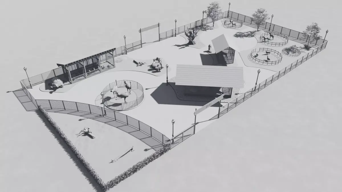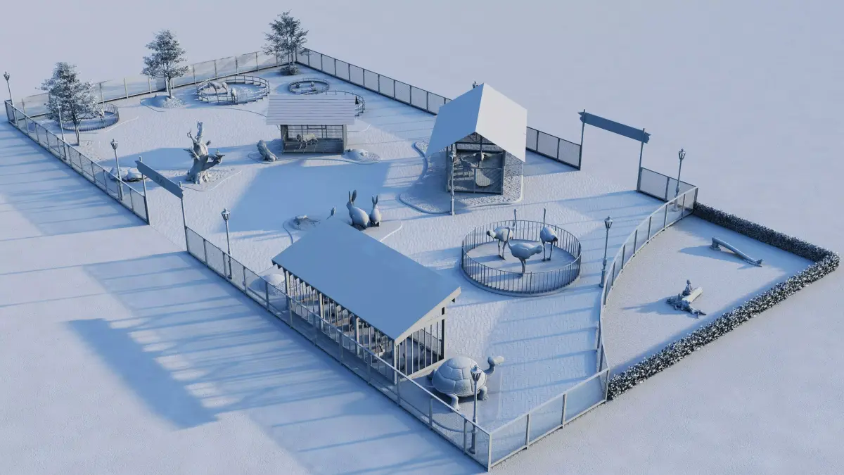 This is a fully detailed 3D model of a Children's Zoo, ideal for architectural visualization, animations, educational content, and games. The model is clean, well-organized, and ready for rendering or further editing.