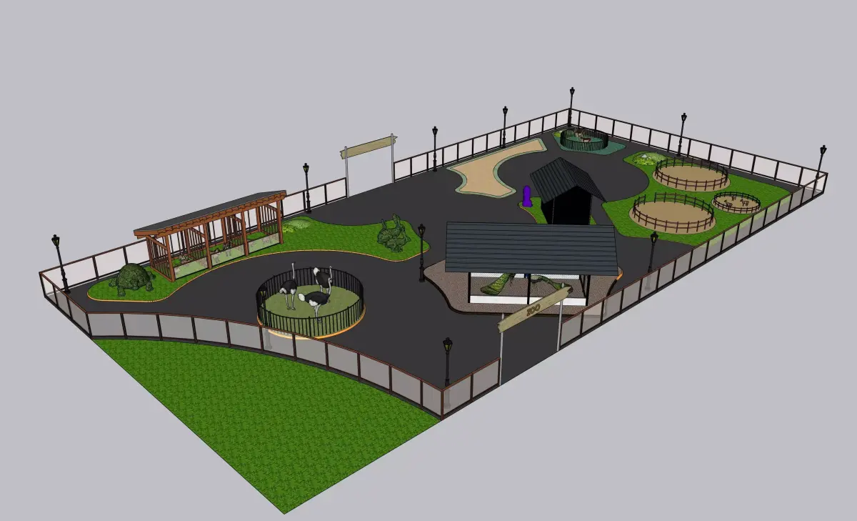 Key Features:All elements are grouped and organized in SketchUpHigh-resolution, optimized textures and materialsRealistic zoo layout with child-friendly designReady for use in rendering, animation, VR/AR, and architectural projects