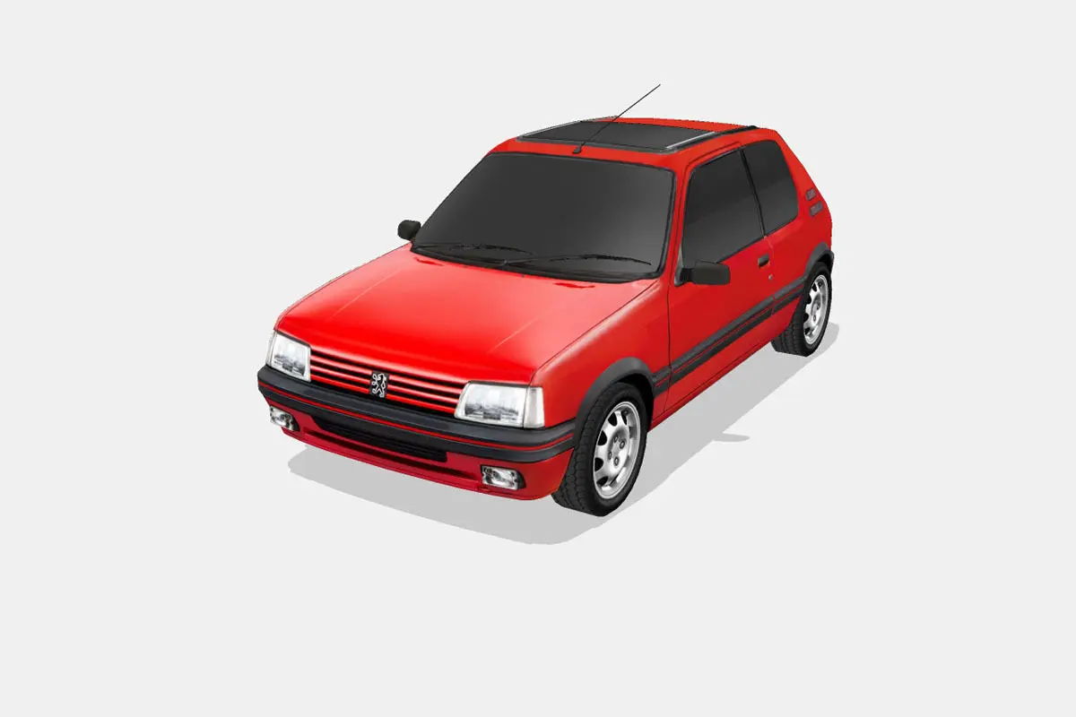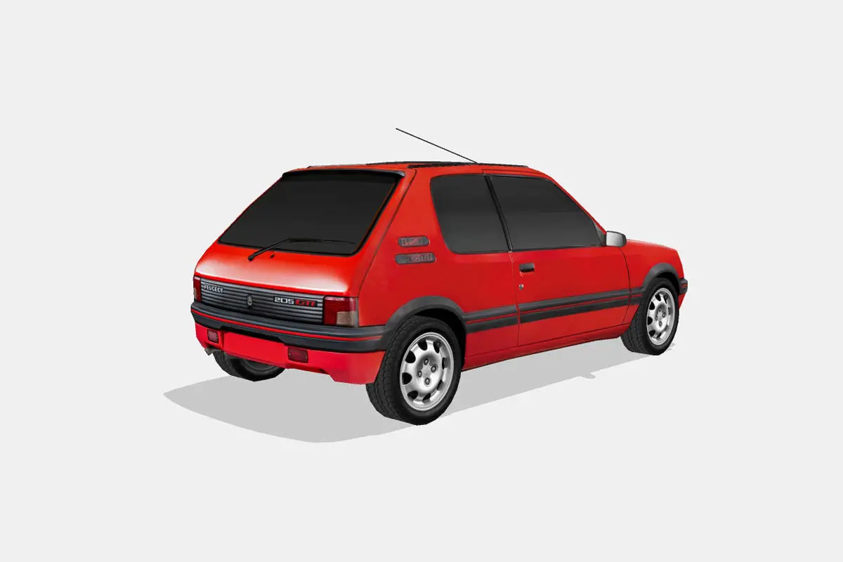 3d model of the 1986 Peugeot 205 GTI, a supermini 3-door hatchback