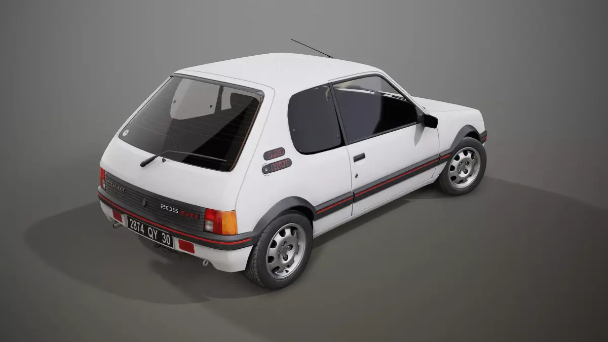 The Peugeot 205 GTI is an iconic French car of the 80/90’s. The 1.9 Engine produces 130bhp.It’s a **Game ready **mesh modeled with Blender and textured with Substance Painter and Photoshop.