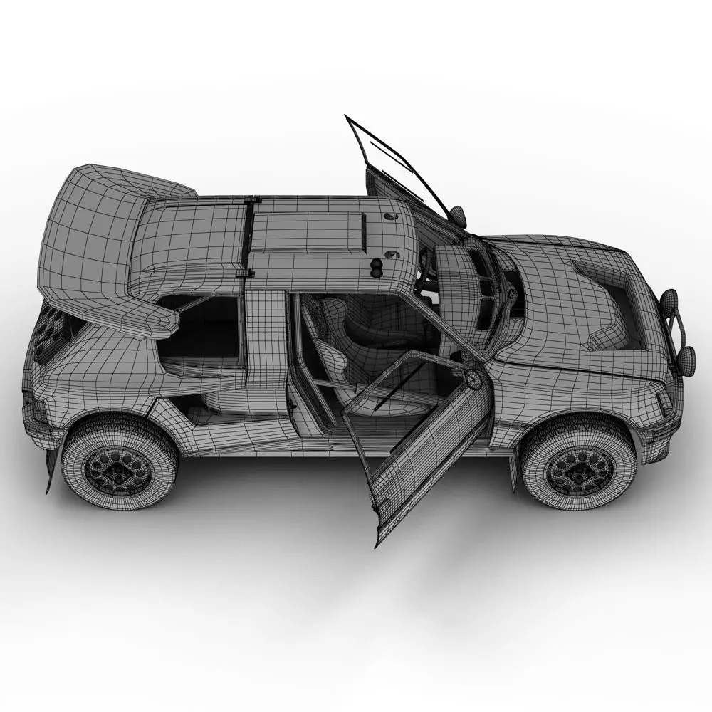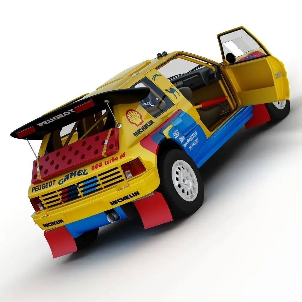 Detailed 3D model of a Peugeot 205 Turbo 16 'Grand Raid'.