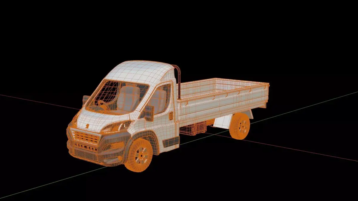 3D model of the Peugeot Boxer Flatbed TruckCreated in Blender and already rigged.The mesh of the model in the Blender file format is mainly quads.