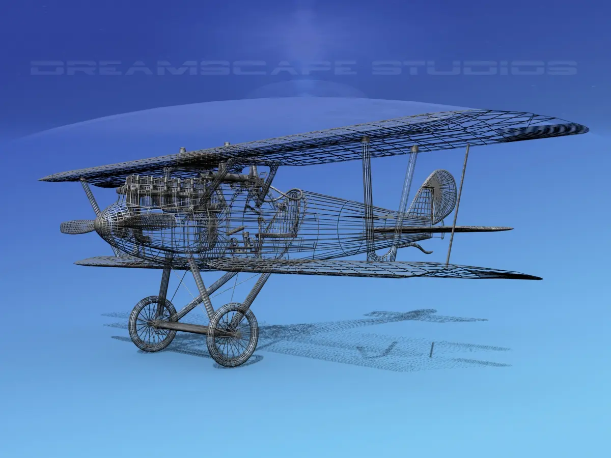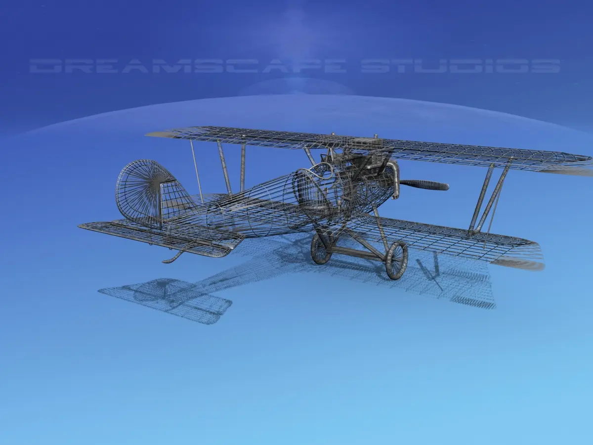 The exposed engine is very detailed and much of the engine is modeled in very much detail. Even valve springs and push rods are modeled in the top end of the exposed engine. The radiator and fuel tank are also modeled and located accurately in the top wing. The cockpit is detailed with controls and the instruments are included along with the wood structure of the cockpit area. The instrument panel is modeled as well as the independent compass mounted in the floor on the right side. The model includes animateable ailerons, elevators, rudder, propeller, controls, and some engine parts. The model is completely textured revealing an accurate representation of the wooden structure of the wings tail and stabilizers as well as control surfaces. It comes with all the materials and textures and is available in 10 different formats.