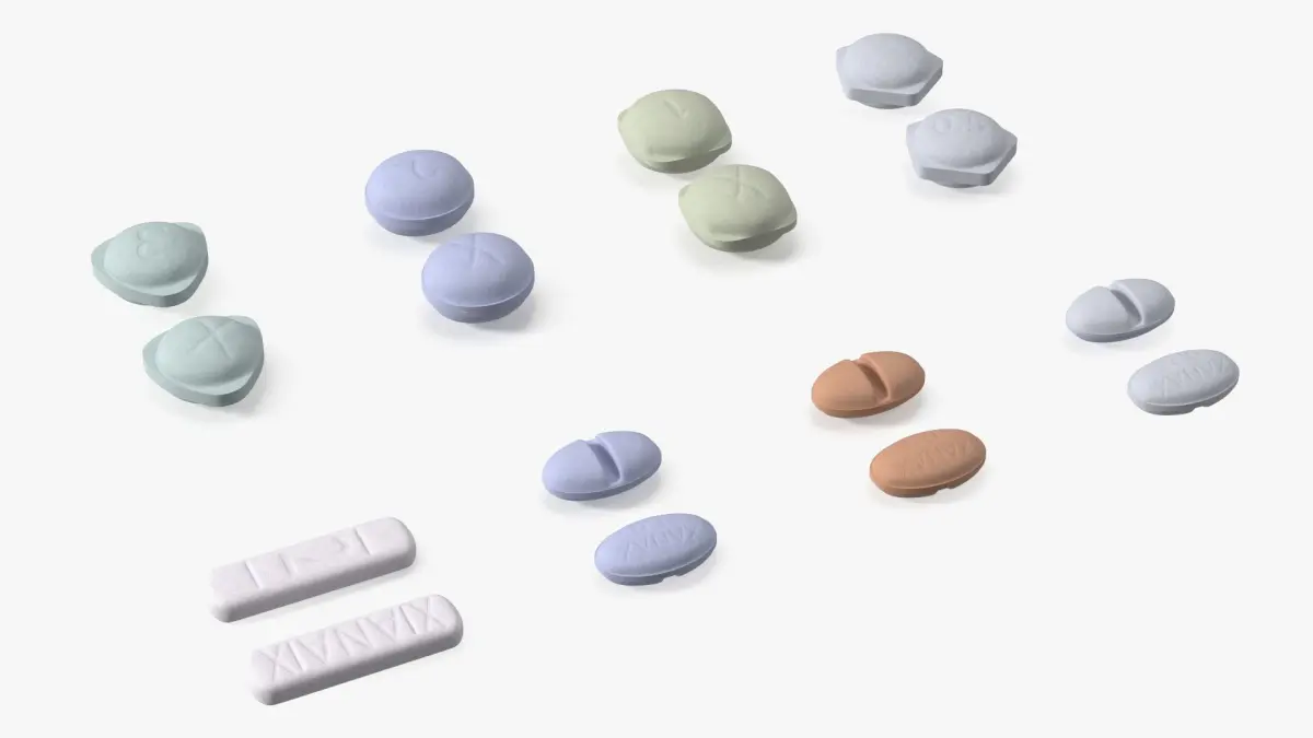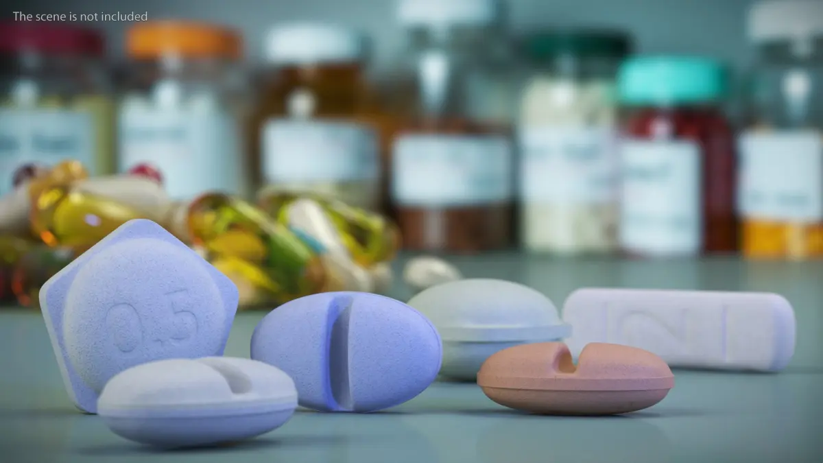 Pharmaceutical Xanax Tablets Mix is a 3d model of various types of medicine tablets and capsules, representing a diverse range of pharmaceutical products designed for medical and therapeutic uses.
