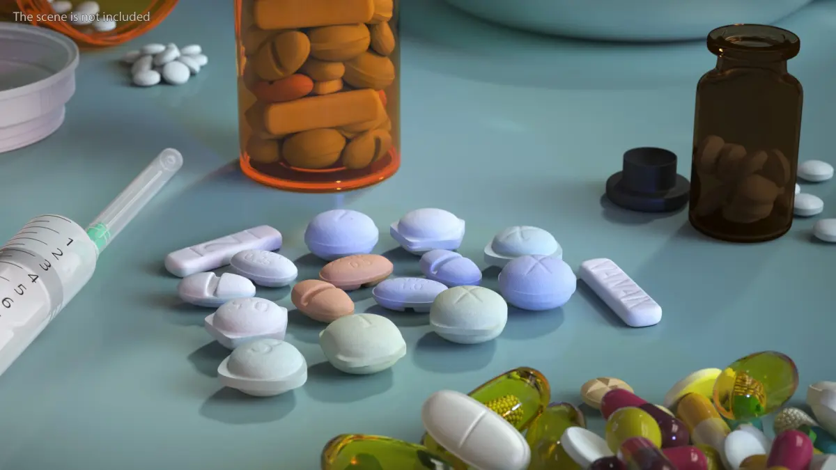 This model showcases a variety of shapes, sizes, and colors of pills and tablets, mimicking a real-world assortment found in healthcare settings. Each pill is crafted with realistic details to enhance the authenticity of the collection. The model serves as an excellent visual tool for educational and promotional purposes.