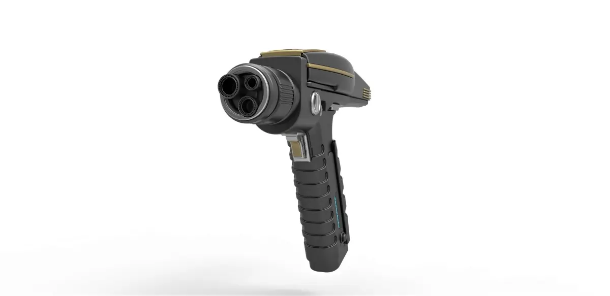 Useful links:https://trekmovie.com/2018/07/19/sdcc18-qmx-previews-star-trek-discovery-figure-and-phaser-and-more/https://www.inverse.com/article/41539-star-trek-discovery-phaser-toy-prophttps://www.youtube.com/watch?v=ls9GHFJKIF8&ab_channel=CBSHomeEntertainmenthttps://trekmovie.com/2017/07/20/sdcc17-see-the-federation-and-starfleet-costumes-and-props-from-star-trek-discovery/