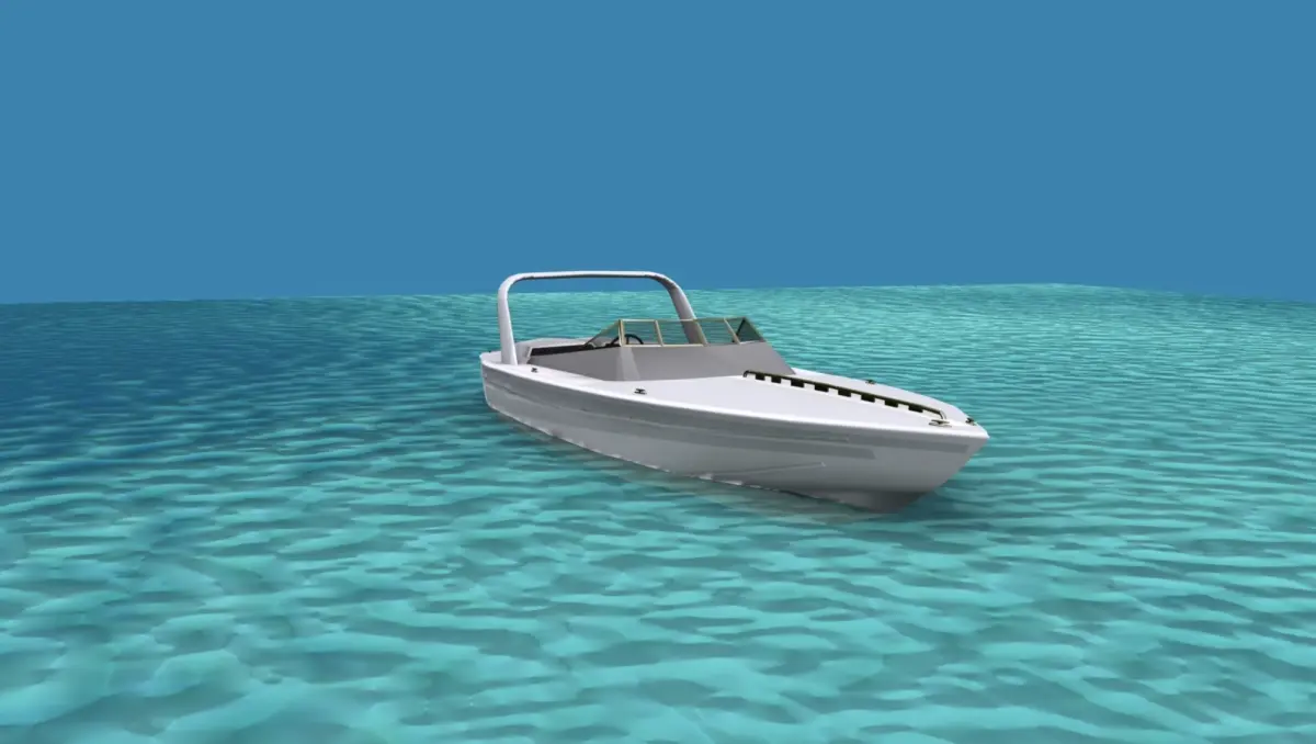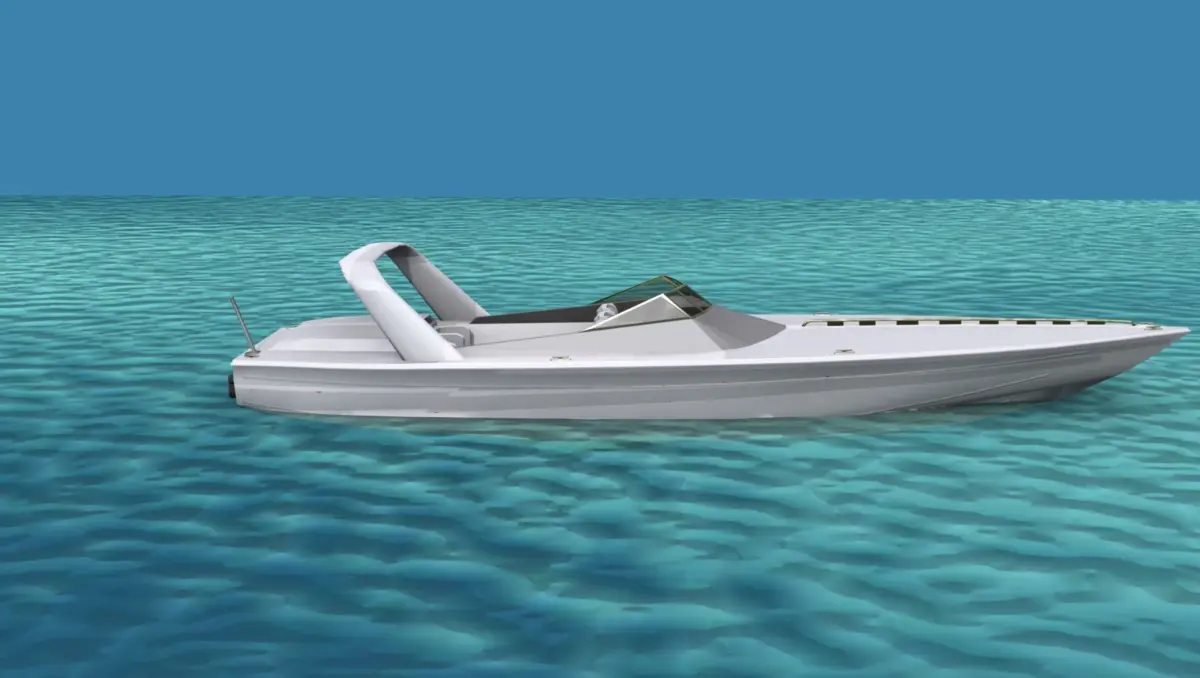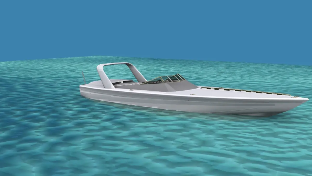 This is a fictional ocean going cigarette racing boat that would be popular with the wealthy racers or speed boat enthusiast. It has twin engines driving two water jets and seats for six. The fore cabin entry is modeled.