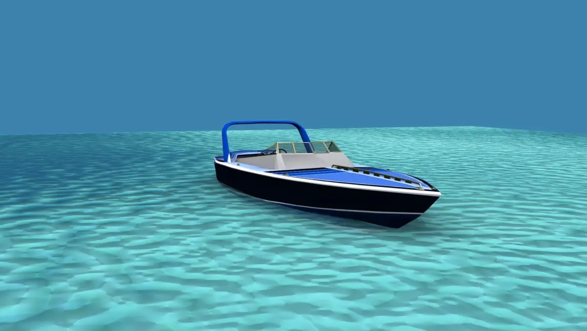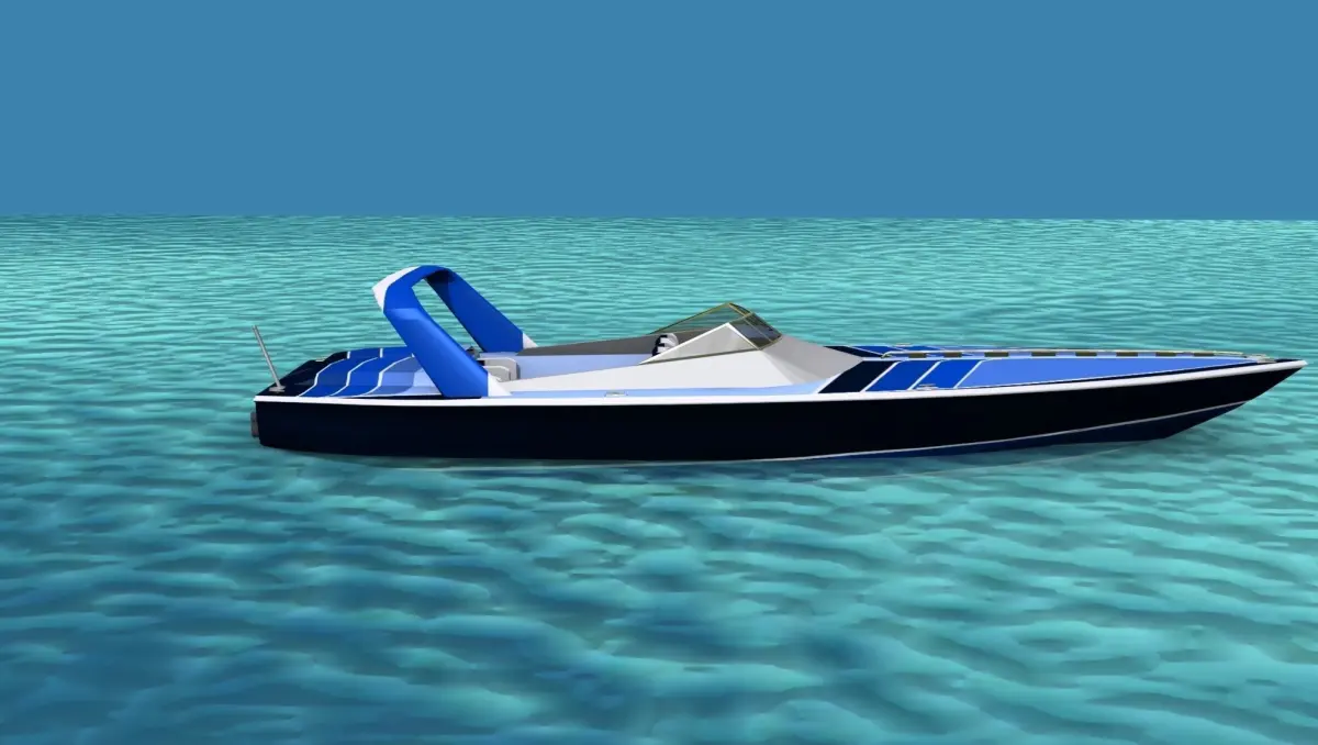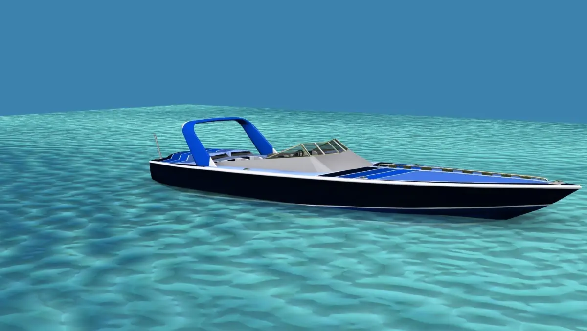 This is a fictional ocean going cigarette racing boat that would be popular with the wealthy racers or speed boat enthusiast. It has twin engines driving two water jets and seats for six. The fore cabin entry is modeled.