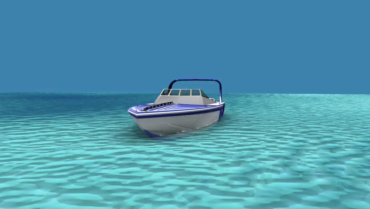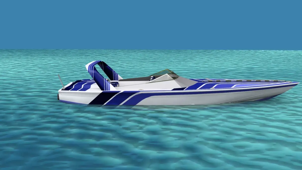This is a fictional ocean going cigarette racing boat that would be popular with the wealthy racers or speed boat enthusiast. It has twin engines driving two water jets and seats for six. The fore cabin entry is modeled.