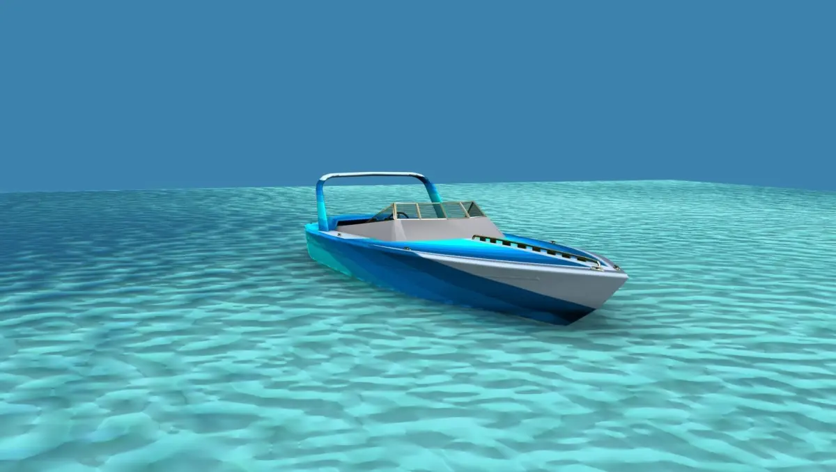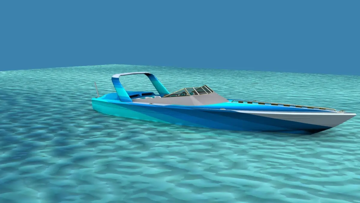 This is a fictional ocean going cigarette racing boat that would be popular with the wealthy racers or speed boat enthusiast. It has twin engines driving two water jets and seats for six. The fore cabin entry is modeled.