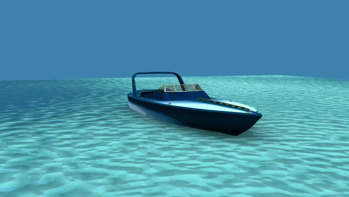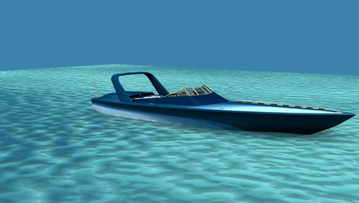 This is a fictional ocean going cigarette racing boat that would be popular with the wealthy racers or speed boat enthusiast. It has twin engines driving two water jets and seats for six. The fore cabin entry is modeled.